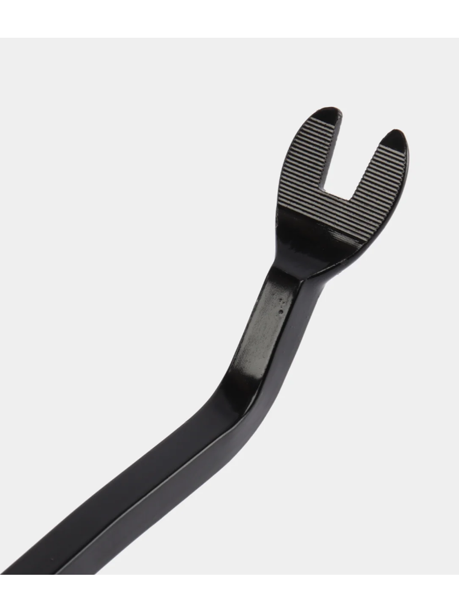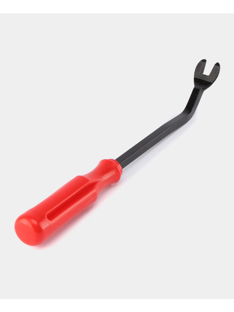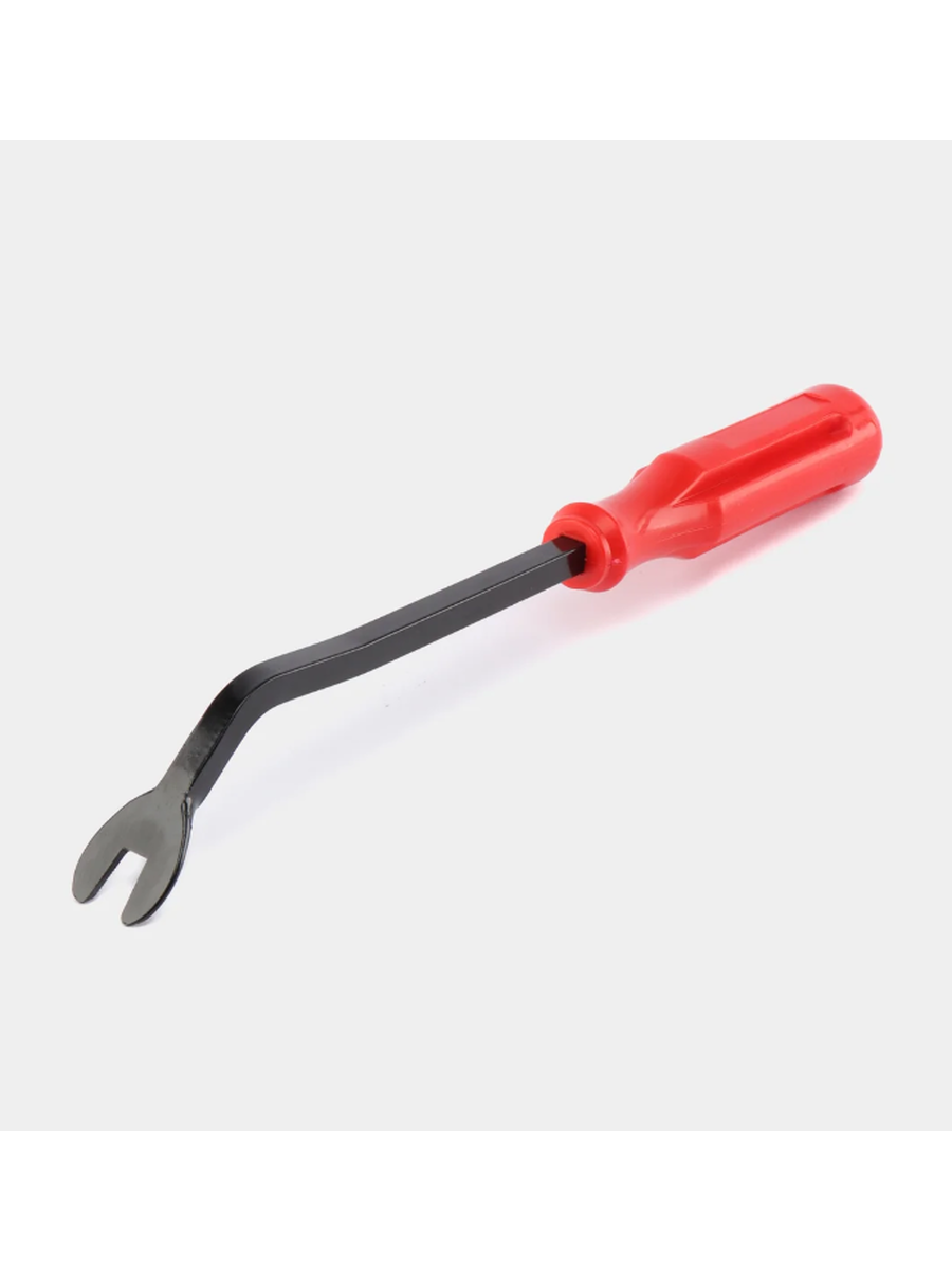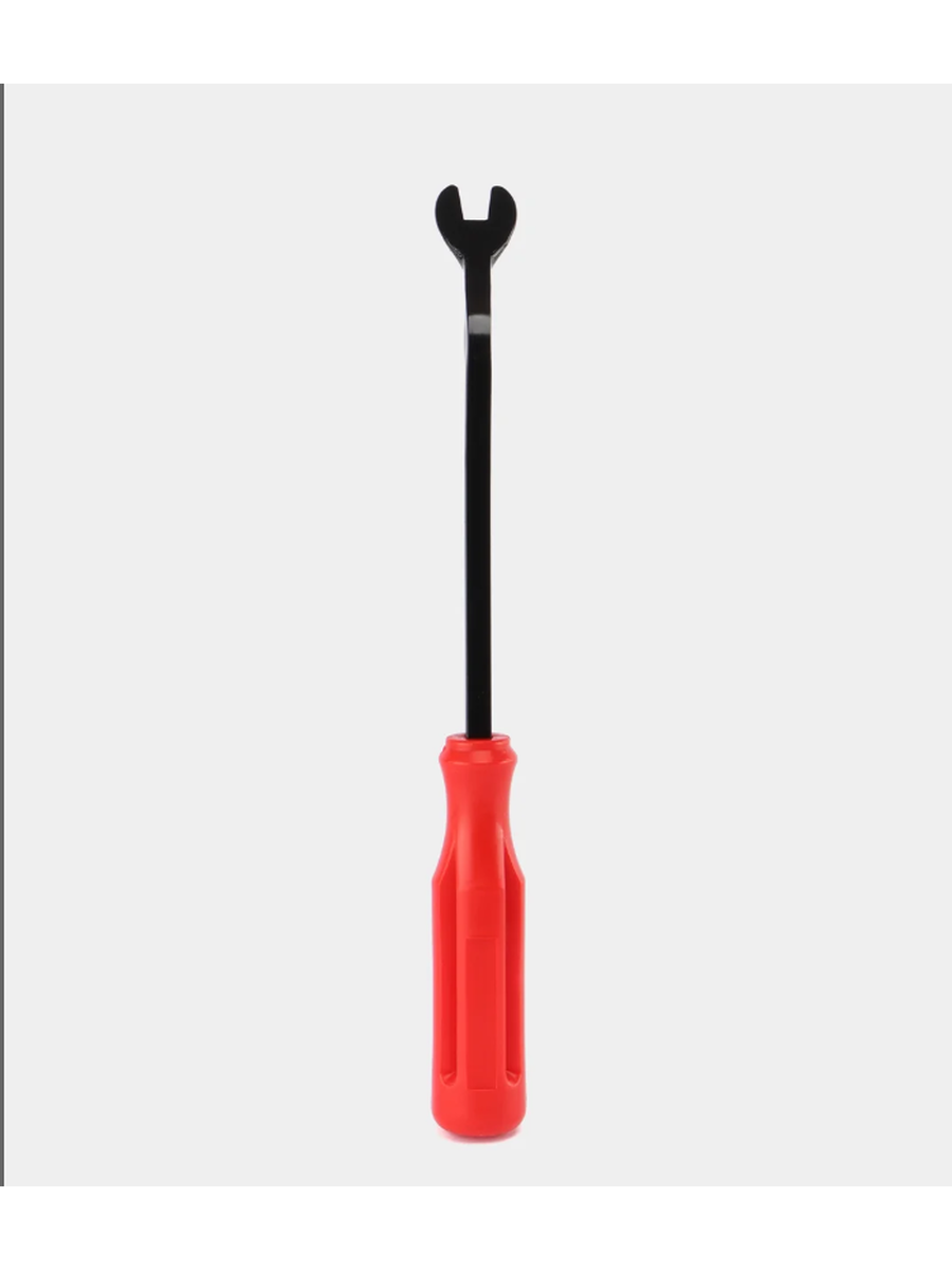 Съемник клипс обшивки салона - это прочное приспособление предназначено для проведения демонтажных работ. Конструкция состоит из хромованадиевой рабочей стали и двухкомпонентной рукоятки. Съемник применяется для снятия вручную дверных клипс.