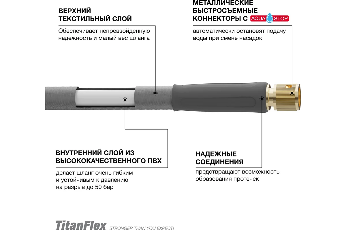 Внутренний слой из ПВХ имеет утолщенные стенки для максимальной прочности и устойчивости к давлению на разрыв до 50 бар.