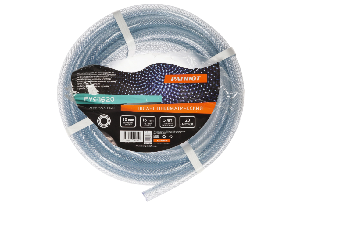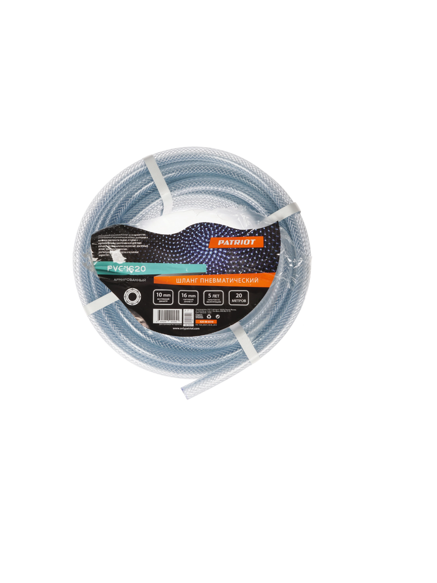 Шланг пневматический армированный Patriot PVC 1620 длиной 20 м изготовлен из прозрачного ПВХ и укреплен полиэфирными нитями. Модель способна выдерживать давление до 20 бар. Это позволяет использовать ее для передачи воздуха и жидкостей. Гладкая верхняя поверхность шланга приятна на ощупь. Внешний диаметр изделия составляет 16 мм, а внутренний – 1 см. Шланг пневматический армированный Patriot PVC 1620 достаточно эластичный, легкий и прочный. Использовать его будет легко. Материал, из которого изготовлен шланг, невосприимчив к воздействию ультрафиолета и химии.