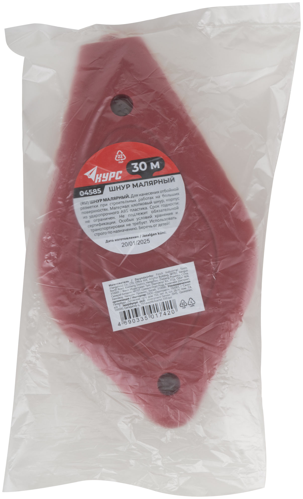 Шнур малярный отбойный КУРС – это незаменимый инструмент для нанесения прямых линий на больших поверхностях, используется при малярных, штукатурных, плиточных и других отделочных работах. Шнур пропитан специальным красящим порошком, который оставляет четкий и яркий след на поверхности при отбивании. Усиленный пластиковый корпус из ABS пластика обеспечивает прочность и долговечность инструмента. Длина шнура 30 метров позволяет выполнять разметку на больших расстояниях.