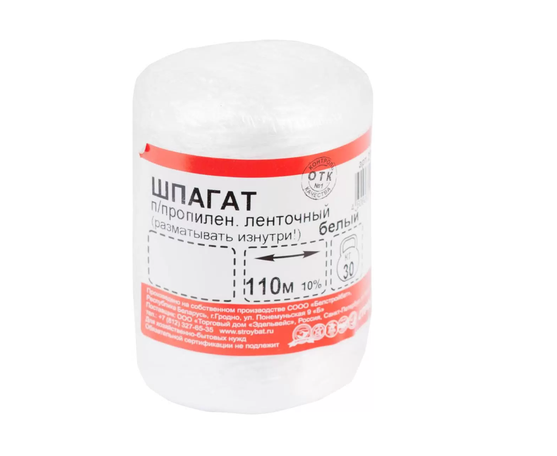 Материал изготовления: полипропиленовая фибрилированная пленочная нить. Шпагат из полипропилена отличается высокой прочностью и повышенными эксплуатационными характеристиками. Формировать узлы с помощью шпагата очень удобно, благодаря рельефной фактуре. как упаковочный материал и материал для обвязки тюков для прессования сена. Другие области применения: народный промысел, тепличное и сельское хозяйство (подвязка овощных культур)высокая прочность устойчивость к плесени, гниению и УФ-излучению окраска устойчива к атмосферным воздействиям не впитывают влагу положительная плавучесть рабочая температура от +80°С до -15°С