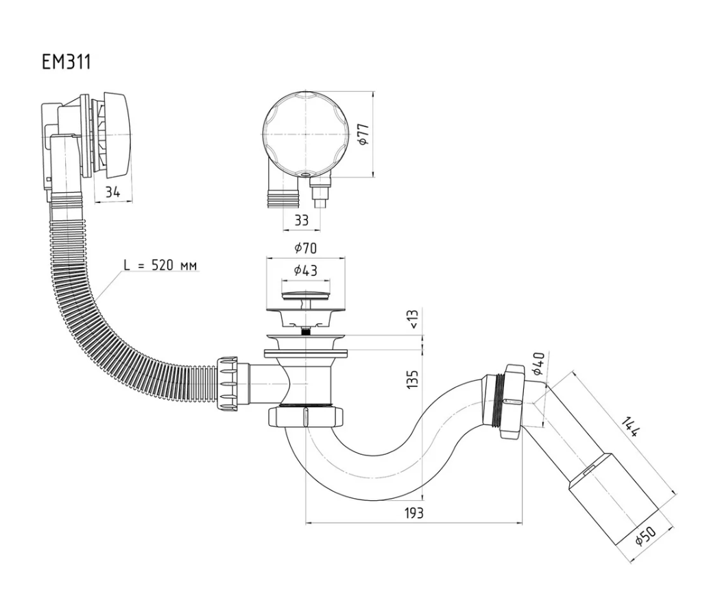 Диаметр сливного отверстия