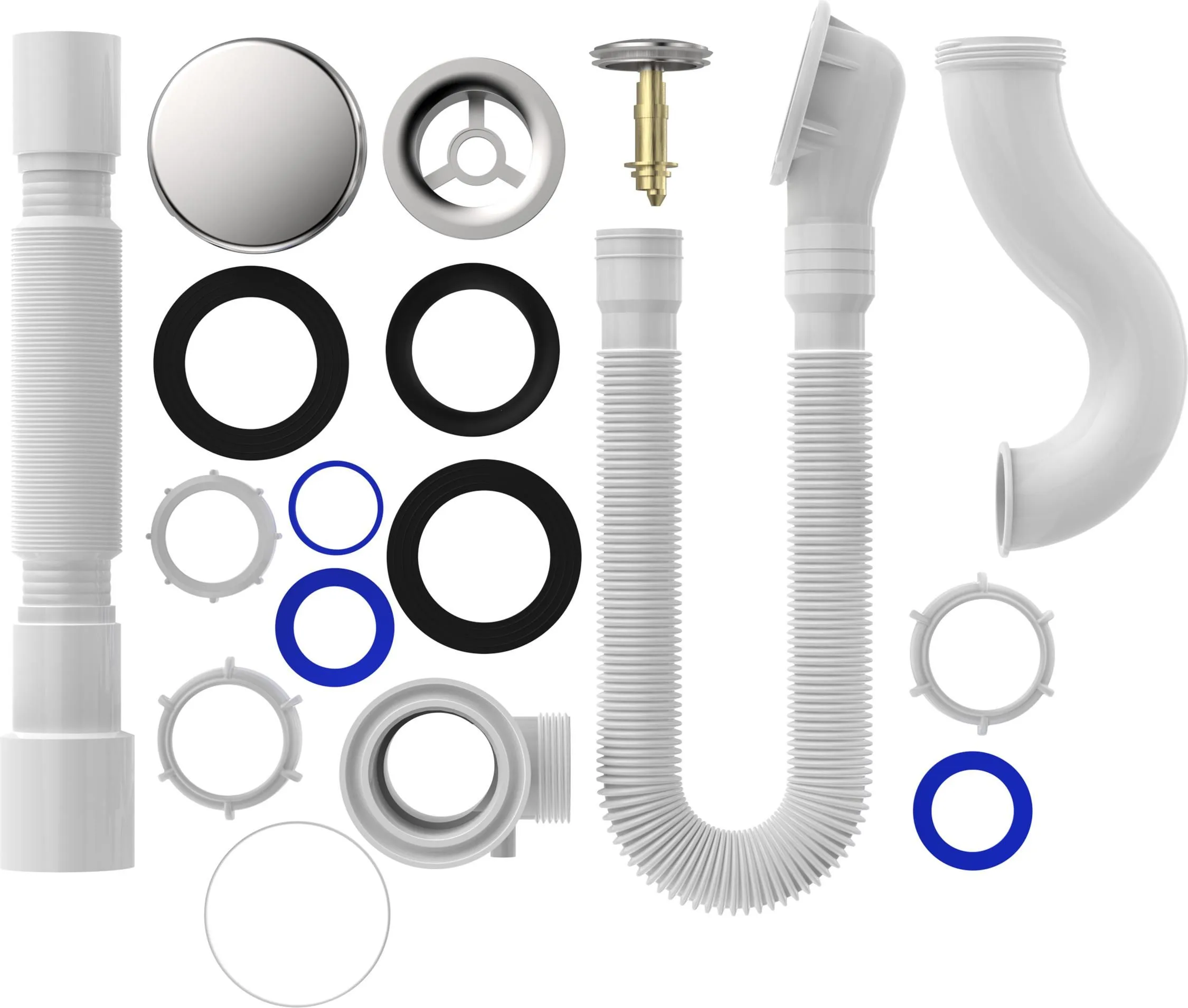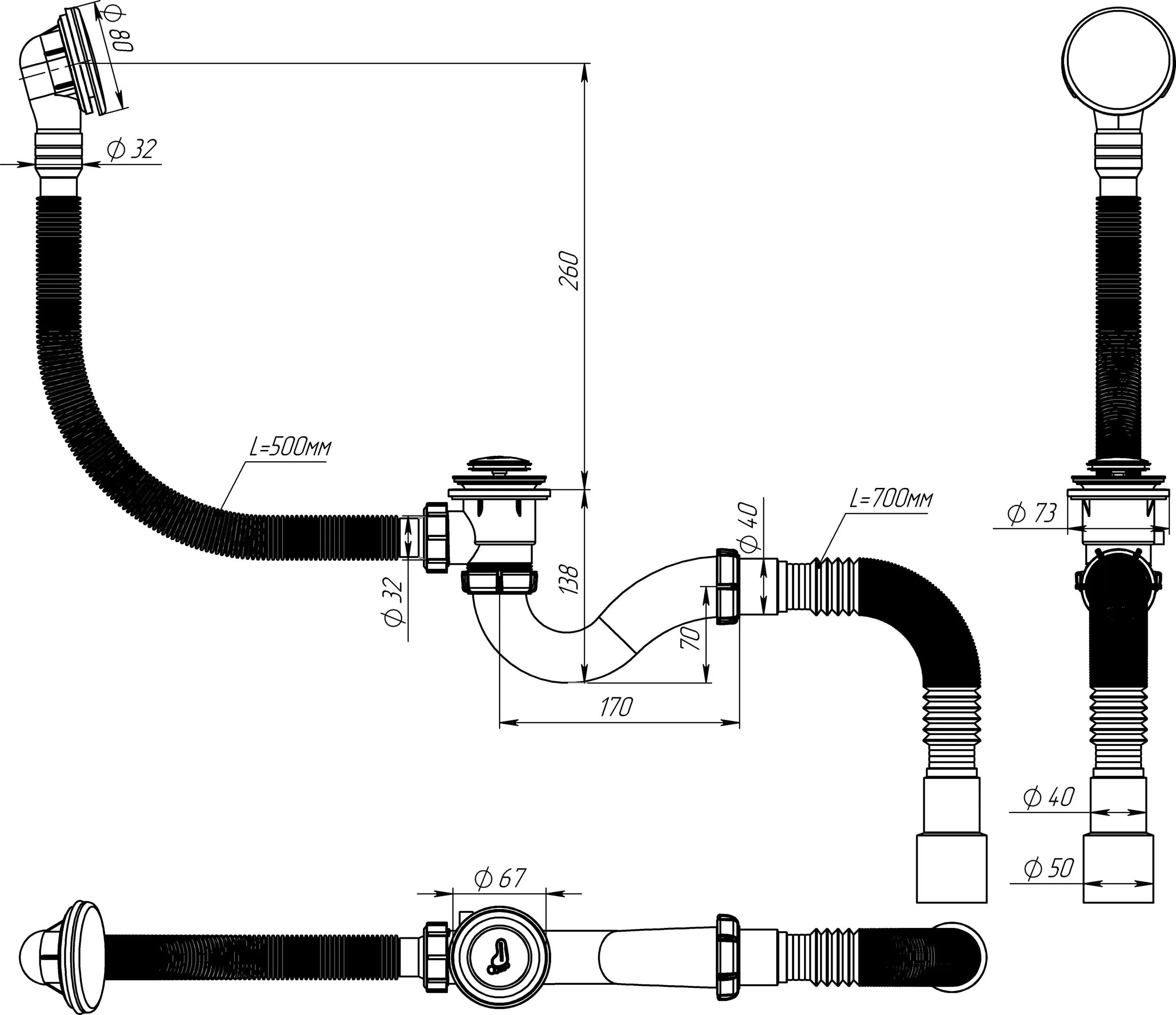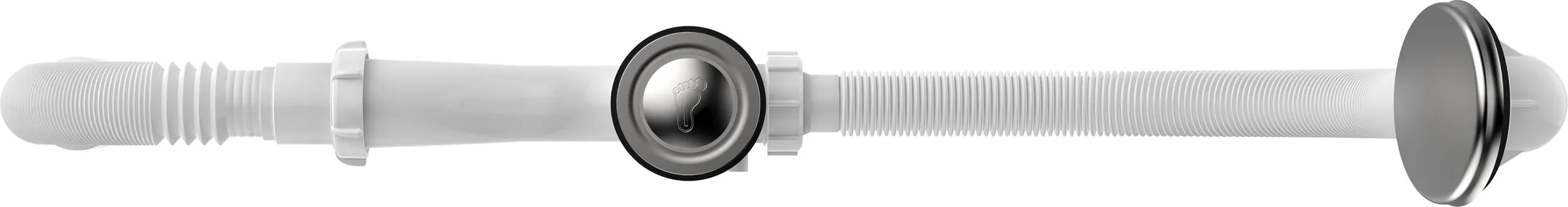 Сифон для ванны V682 1 1/2"х40 прямоточный нажми и откройся Aquant Сифон для ванны 1 1/2"х40 прямоточный клик-клак с утапливаемым грибком перелив-автомат металл с гофротрубой 40х40/50 (V682-18-MR). Сифон для ванн прямоточный с переливом автоматом. Перелив-автомат оборудован выпуском с системой клик-клак (нажми-откройся) из металлического сплава с полоностью утапливаемым грибком, который в закрытом состоянии не выступает над плоскостью ванны. Система клик-клак позволяет закрывать слив воды в ванной простым нажатием на крышечку выпуска. Заглушка перелива металлическая, что позволяет устанавливать ее под любую толщину или форму ванны. Выпуск с системой клик-клак спроектирован под стандартный диаметр сливного отверстия на всех типах ванн Ø50мм. Колено сифона прямоточное, высота гидрозатвора 50 мм. Гофротруба с универсальным выходом в канализацию 40/50мм. Скорость слива: 26 л/мин. Прокладки на выпуске выполнены из материала термоэластопласта (ТЭП), который не вступает в реакцию в акриловыми ваннами. Полная комплектация, все гайки, прокладки и схема установки в комплекте.