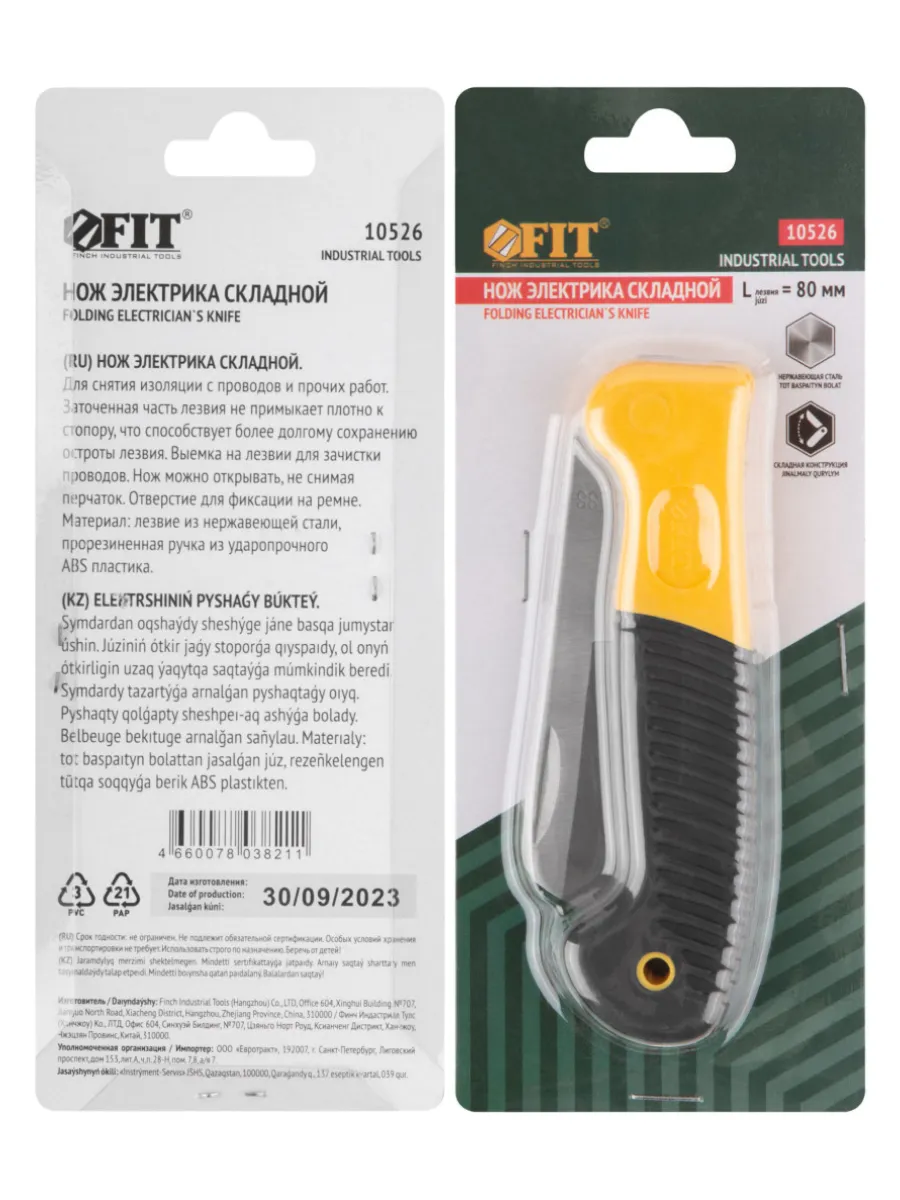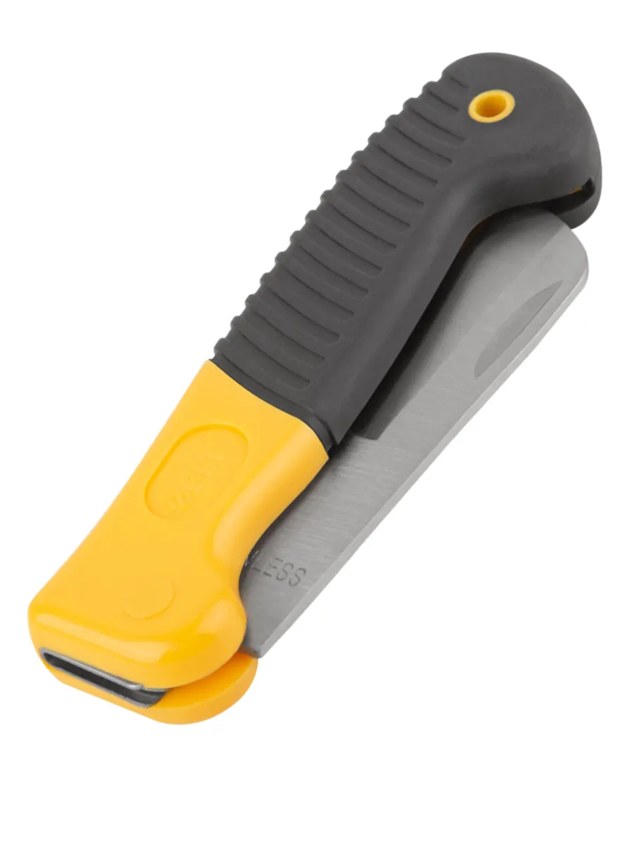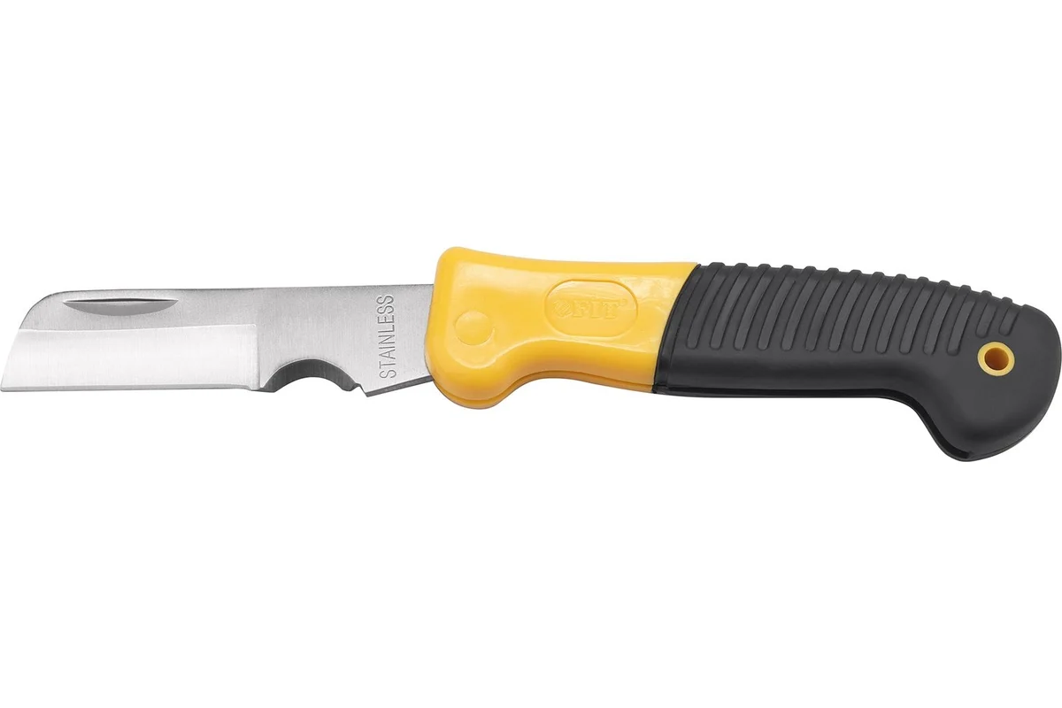 Складной нож электрика используется для снятия изоляции с проводов и прочих работ. Заточенная часть лезвия не примыкает плотно к стопору, что способствует более долгому сохранению остроты лезвия. Выемка на лезвии служит для зачистки проводов. Нож можно открывать не снимая перчаток. Специальное отверстие служит для фиксации на ремне. Нож имеет лезвие из нержавеющей стали. прорезиненная ручка из ударопрочного ABS пластика обеспечивает комфортное использование.