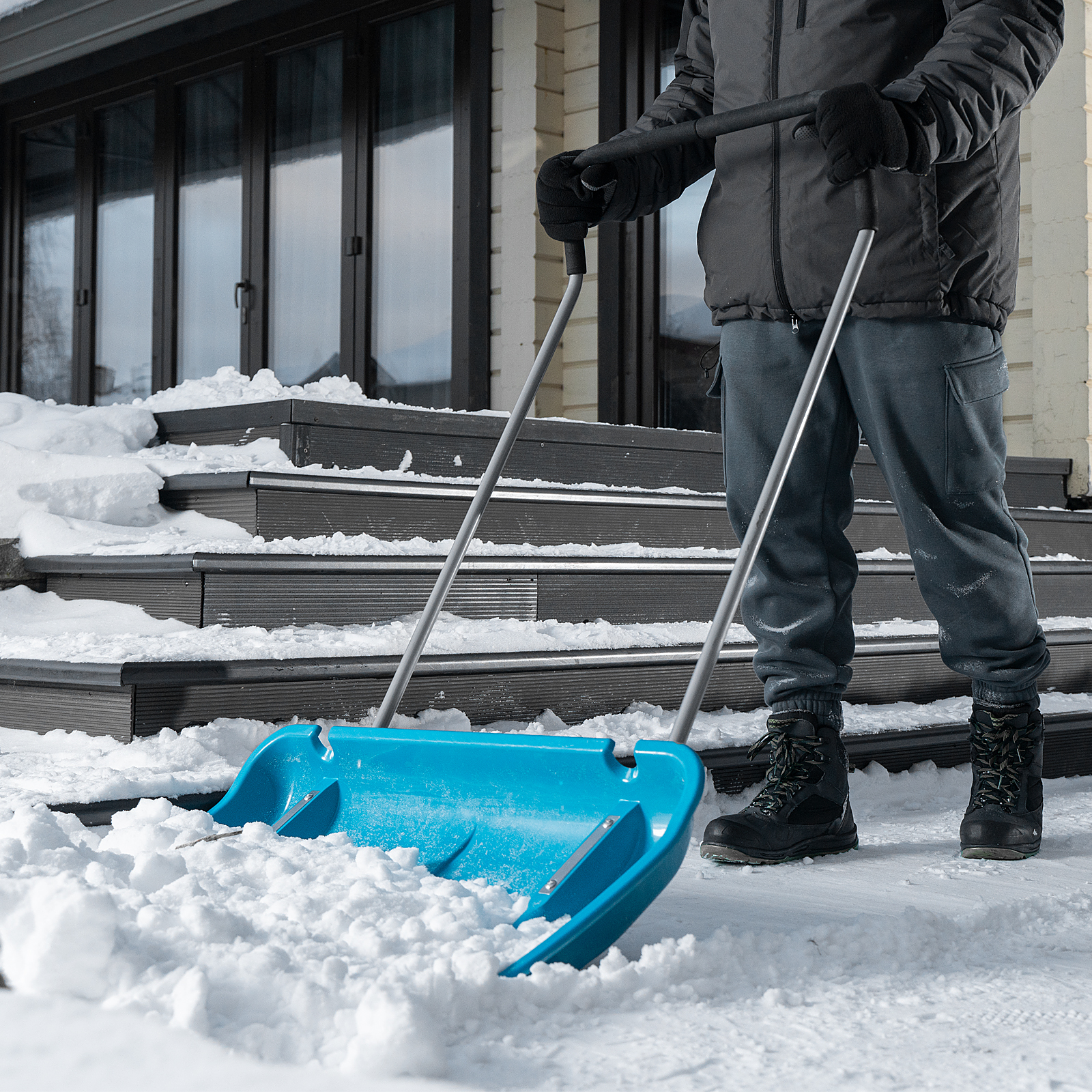 Скрепер Palisad LUXE 61800 размером 750 x 445 x 1275 мм, с ковшом из полипропилена, колесами и рукояткой с ПВХ-накладкой, предназначен для уборки снега. Широкий и вместительный ковш позволяет перемещать большое количество снежной массы. 2 колеса упрощают передвижение и ускоряют работу. С помощью скрепера можно быстро расчистить дачный участок, придомовую территорию, пространство перед гаражом, парковку и т.д.