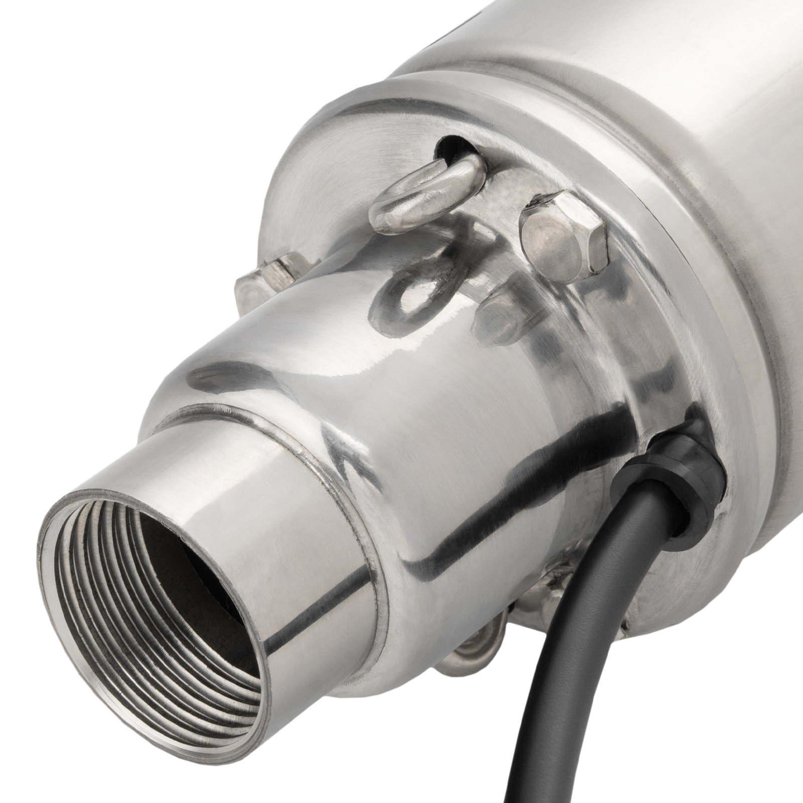 - Легкий монтаж — насос опускается в скважину при помощи троса, закрепленного в проушинах на корпусе.