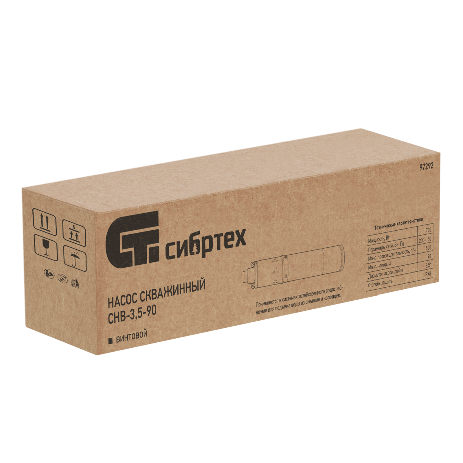 Скважинный винтовой насос Сибртех СНВ-3,5-90 97292 диаметром 3,5", мощностью 700 Вт, способен перекачивать 1500 литров воды в час под напором 90 м. Используется для обеспечения бесперебойного водоснабжения и организации системы орошения на загородном участке или в приусадебном хозяйстве. Забор воды возможен из скважины, колодца или водоема. Допустимая глубина погружения составляет 80 м. Благодаря высокой производительности и напору насос способен обеспечивать несколько точек водоразбора.