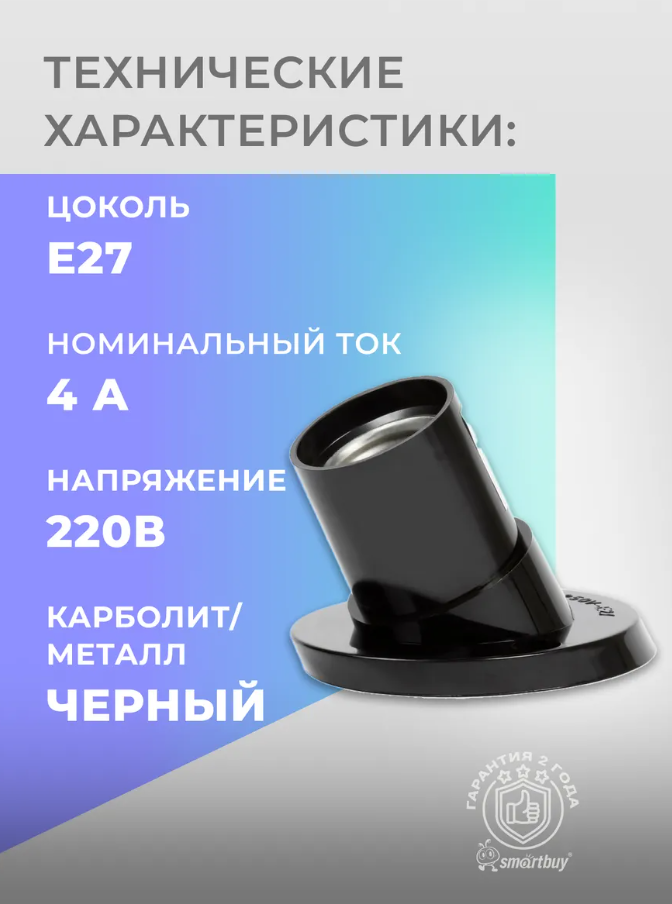 Патроны электроустановочные товарного знака Smartbuy, предназначены для фиксации и присоединения электрических ламп с цоколем E27, E40 к электрической сети. По требованиям электробезопасности патроны соответсвуют техническому регламенту Таможенного союза ТР ТС 004/2011 и ГОСТ IEC 60238. Область применения:- для комплектации различных осветительных приборов (светильники, прожекторы, люстры и т.д.).