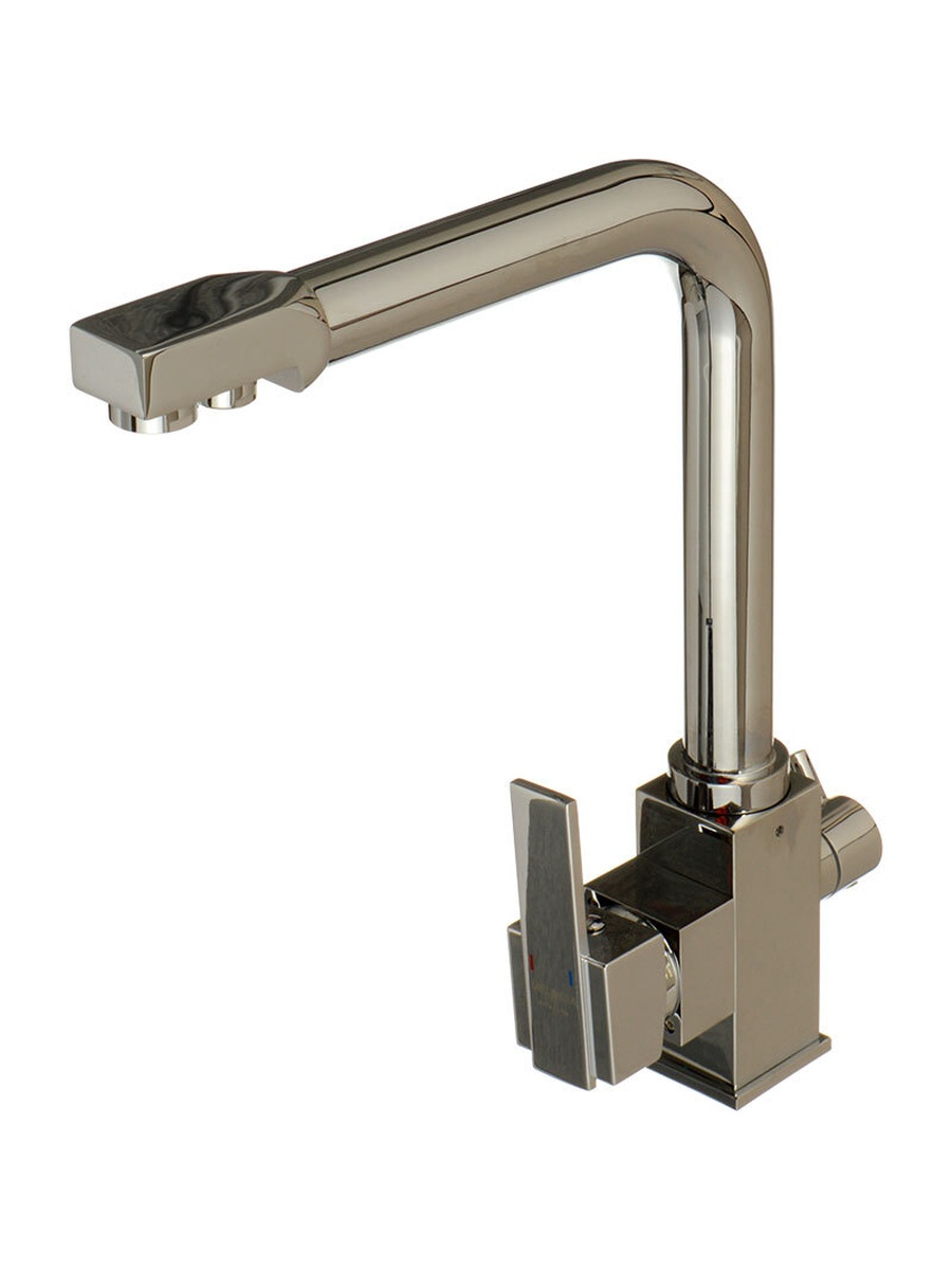 Корпус латунь хром, цинковые ручки в цвет корпуса, картридж керамический Wanhai 35 мм, дивертор латунный с керамическими дисками для включения фильтрованной воды, излив из нержавеющей стали 2в1 для обычной и отфильтрованной воды с аэраторами abs в цвет корпуса, гибкая подводка из нержавеющей стали 2шт по 50см и 1шт 25см, крепеж-гайка нерж.сталь+ латунь