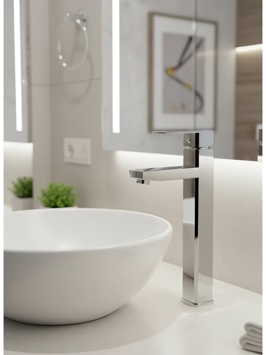 Смеситель для раковины в ванную для чаши - идеальное решение для вашего ванны, умывальника или раковины. Этот смеситель на умывальник в ванну подходит как для установки в квартире, так и на даче или в загородном доме, обеспечивая комфорт и функциональность в использовании. Корпус кран для раковины в ванну высокий выполнен из полимерного сплава, что обеспечивает прочность и долговечность конструкции. Универсальный картридж ESKO диаметром 35 мм обеспечивает плавное и точное регулирование температуры и напора воды, что делает использование смесителя максимально удобным. Кран на чаши раковины в ванну поставляется в комплекте с пьедесталом для надежной установки, креплением "FastFix" для быстрой и прочной фиксации, а также гибкой подводкой длиной 35 см, что облегчает процесс монтажа и подключения к водопроводу.