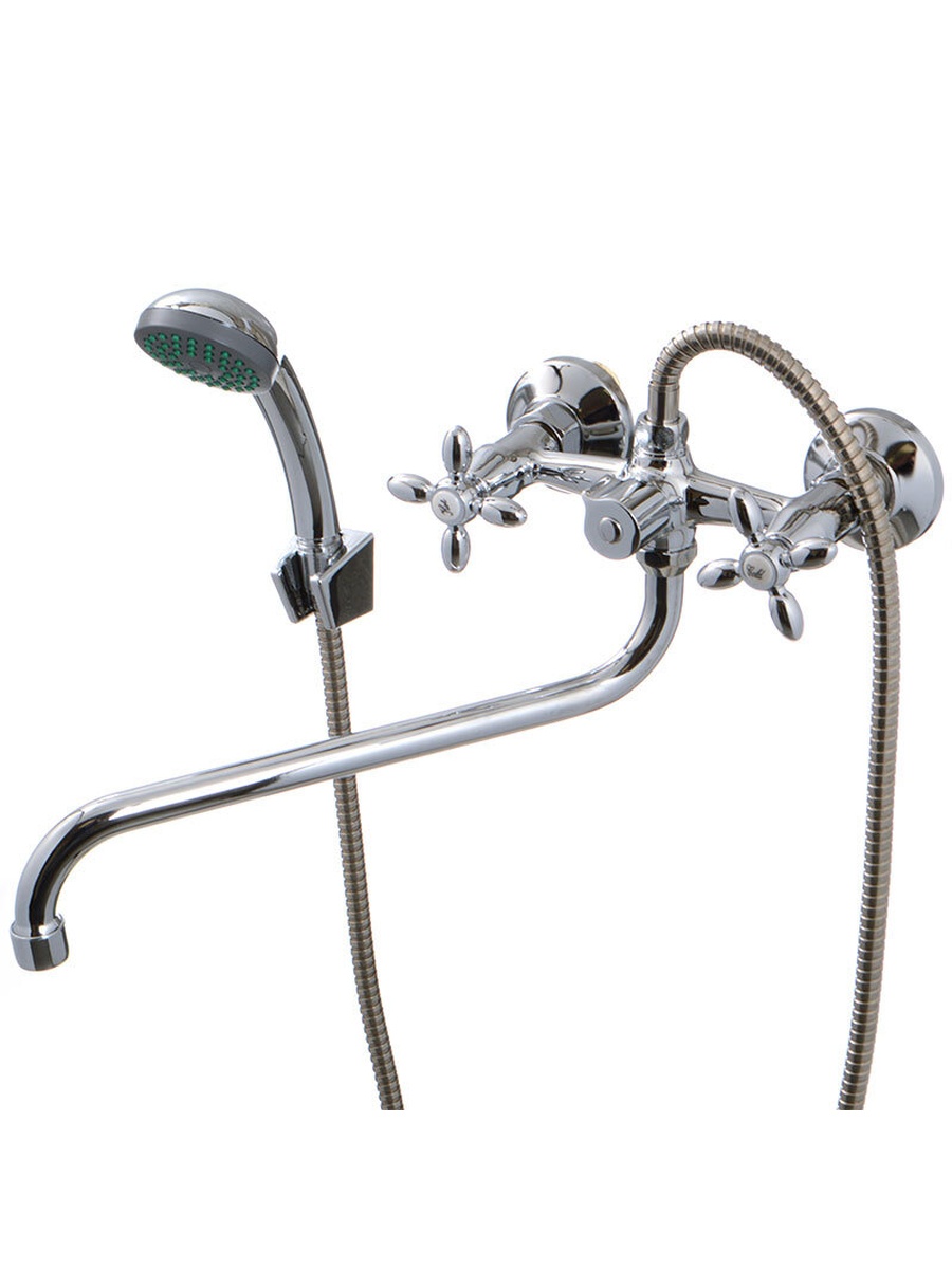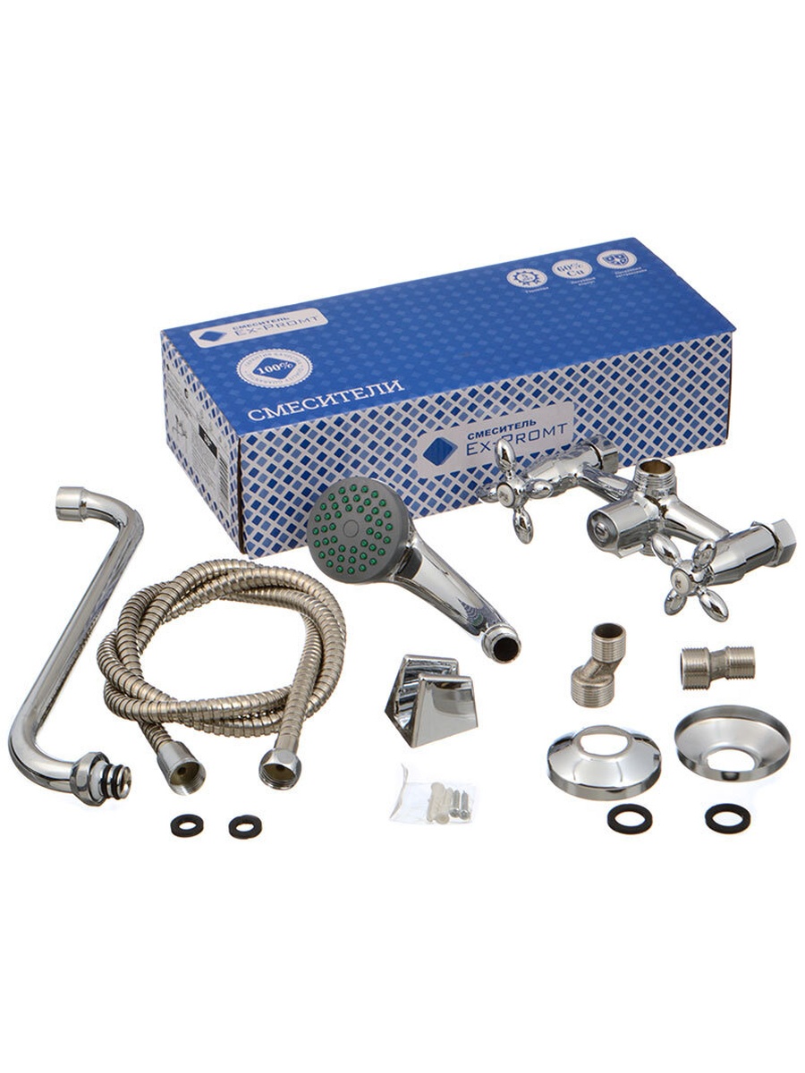 Смеситель для ванны Ex-Promt серии Cross Ex211.1-01 с пластиковыми ручками Крест 3/8" относится к двухвентельному (двуручковому) типу смесителей и имеет длиный излив, керамические кран-буксы и переключатель для душа типа картридж. Встроенный в излив смесителя аэратор смешивает струю воды с воздухом и делает струю воды нежнее и мягче. Корпус выполенен из пищевой химически нейтральной латуни. В комплекте идут аксессуары: шланг, лейка, держатель.