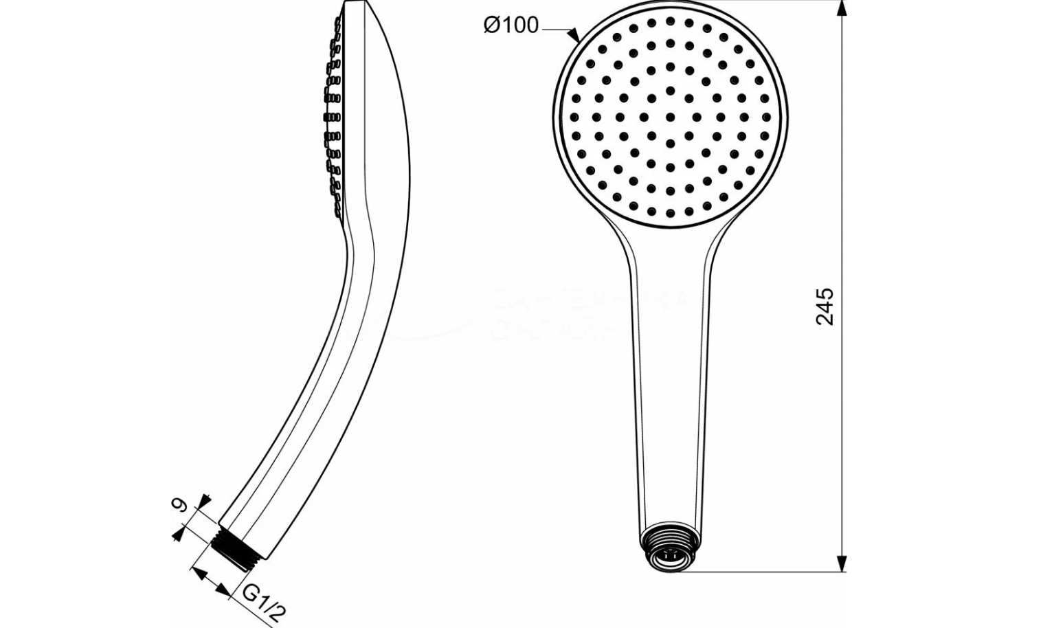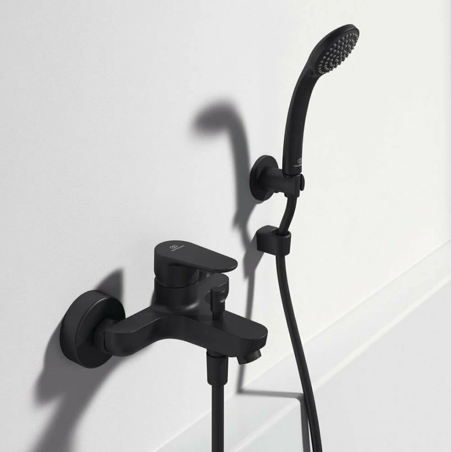 Настенный смеситель для ванны/душа с душевым комплектом.