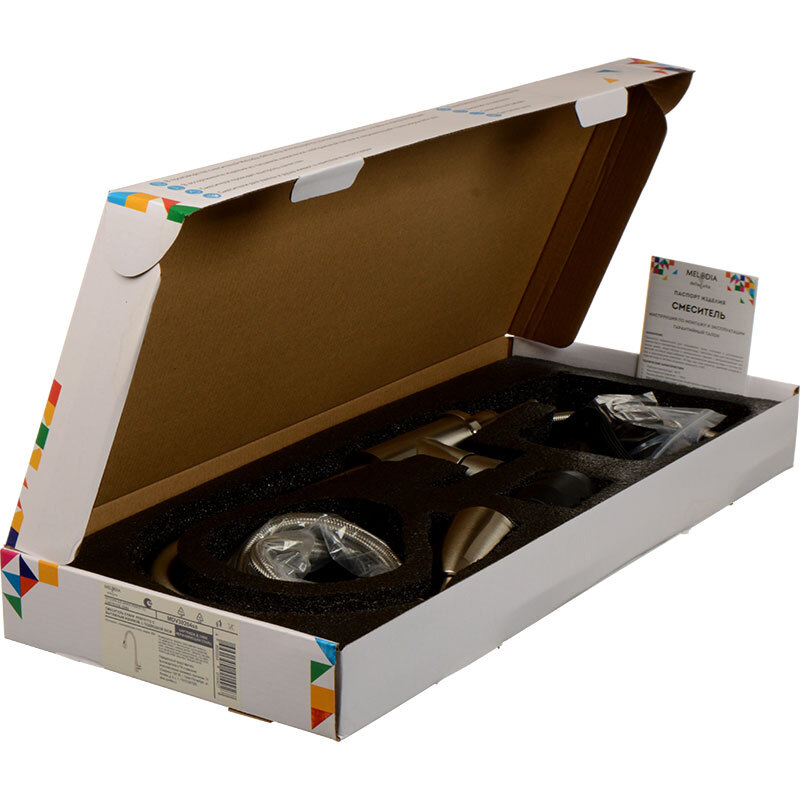 Смесители Melodia della vitta изготовлены из стали 304 марки и латуни, что позволяет использовать их безопасно в течение долгих лет. Смеситель для кухни серии Perfetto изготовлен из стали 304 марки и картриджем д.35мм, с вытяжным изливом арт. MDV30204ss, Серия Perfetto выполнена в современном дизайне, в серии представлены 18 смесителей на раковину. Данная коллекция максимально удовлетворит запросы покупателей в выборе смесителя на кухню, совмещая приемлемую цену и великолепный дизайн. Комплектация поставки: смеситель, подводка, вытяжной излив, шланг, гайка, паспорт.