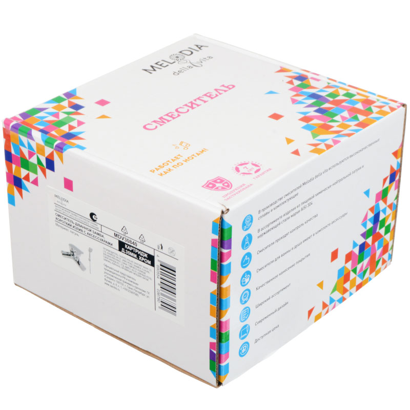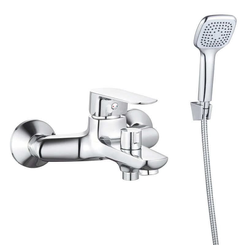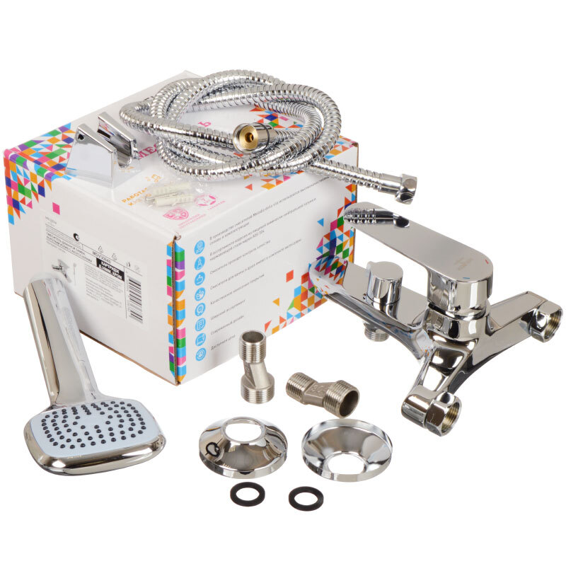 Смеситель для ванны с коротким изливом выполнен в современном дизайне из латуни высокого качестве. Аксессуары (шланг, лейка и держатель) в комплекте.