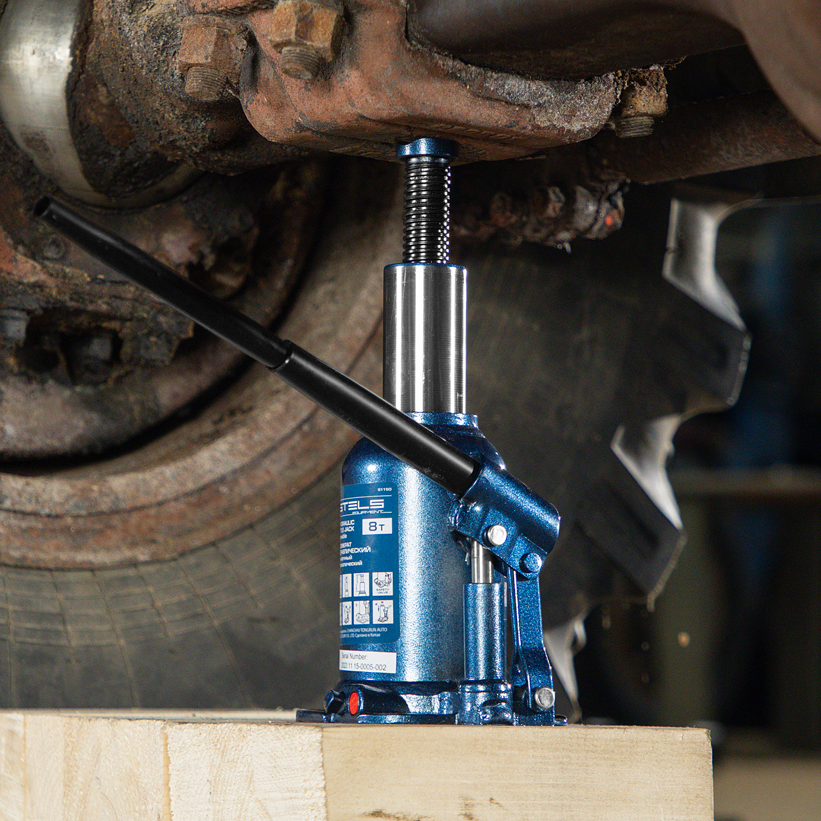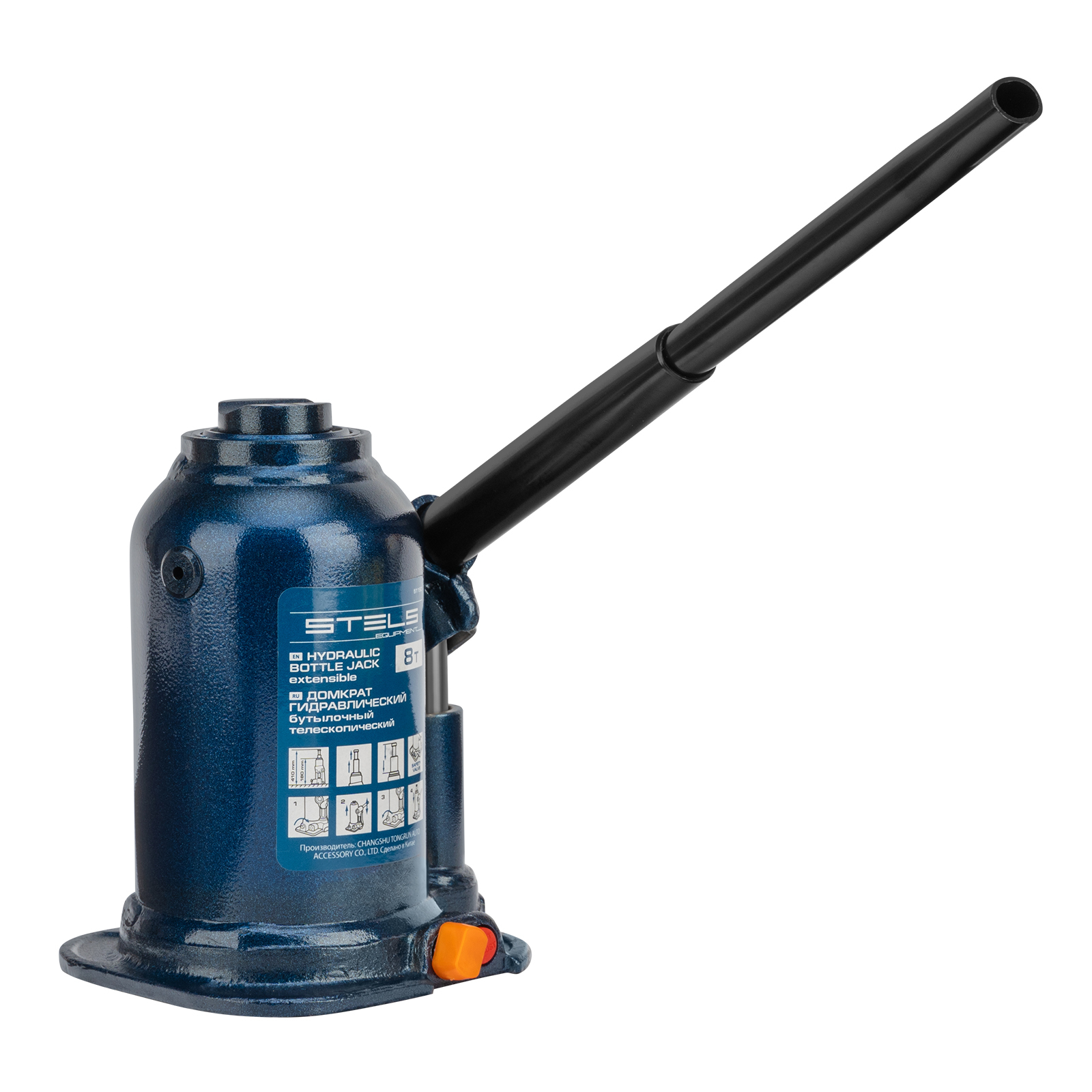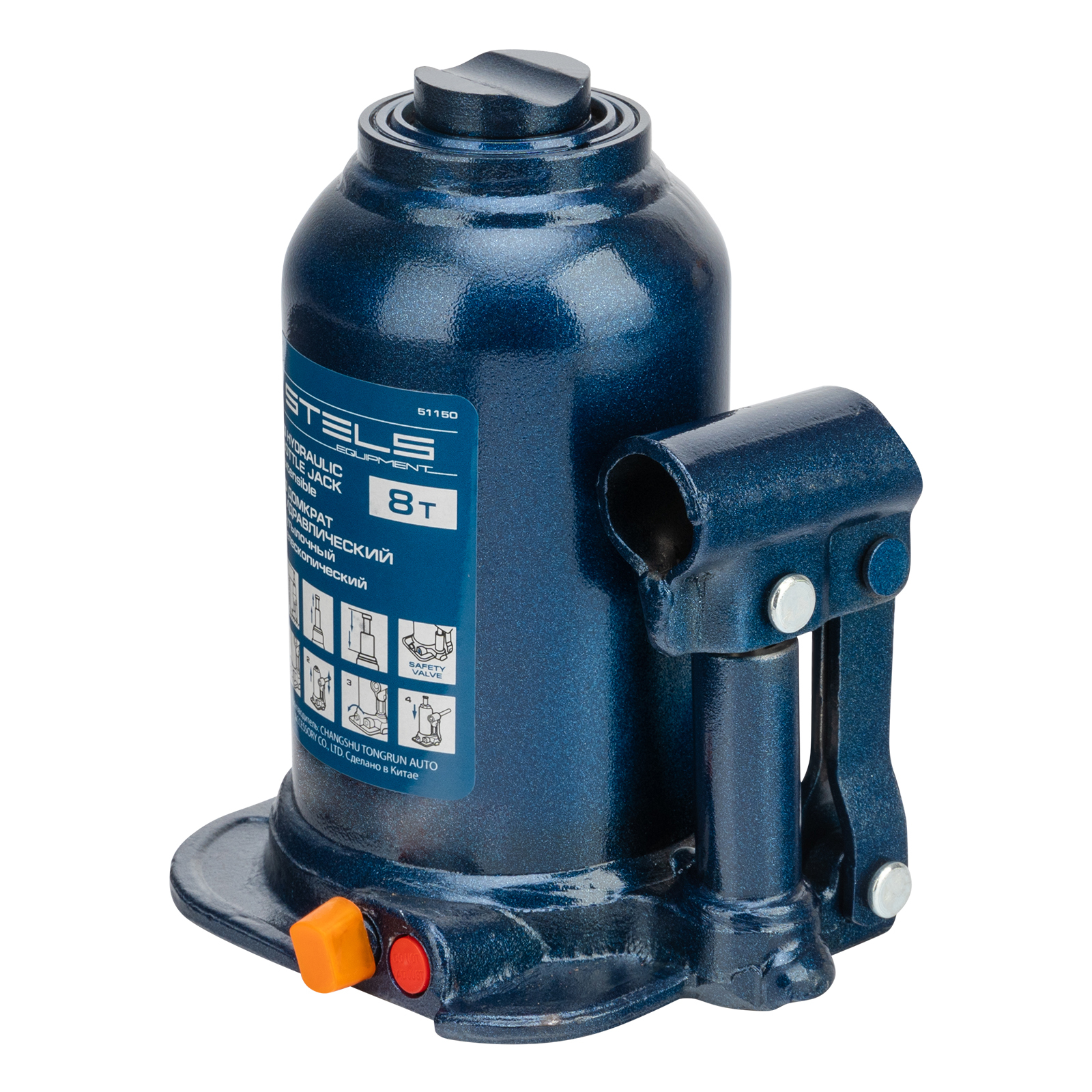 Домкрат гидравлический бутылочный Stels 51150, телескопический, используется для поднятия грузов весом до 8 т с на высоту 180-410 мм. Не требует больших усилий и оптимален для автомобилей с большим клиренсом. Домкрат можно использовать в гараже для самостоятельного ремонта машины или в автосервисе для решения профессиональных задач.