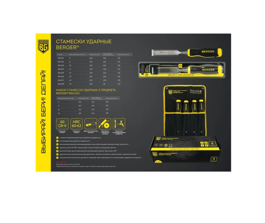 Ширина режущей части: 24 мм Общая длина: 263 мм Материал лезвия: 60 CrV Твердость лезвия: 60-62 HRC Материал рукоятки: двухкомпонентный Подлежит повторной заточке Защитное антикоррозийное покрытие — стамеска предназначена для обработки древесины — отполированная рабочая поверхность — высококачественная хромо-ваннадиевой сталь обеспечивает высокий запас прочности — закалка до 60-62 HRC гарантирует износостойкость режущей кромки — высокоточная односторонняя заточка режущей кромки под углом в 25° — двухкомпонентная эргономичная рукоятка с мягкими вставками обеспечивает надежный захват — металлический затыльник рукоятки позволяет при необходимости использовать ударный инструмент Упаковка: блистер Количество в упаковке: 1 шт. Внимание! Режущая кромка остро заточена. Перед применением необходимо удалить уайт-спиритом транспортировочный лак.