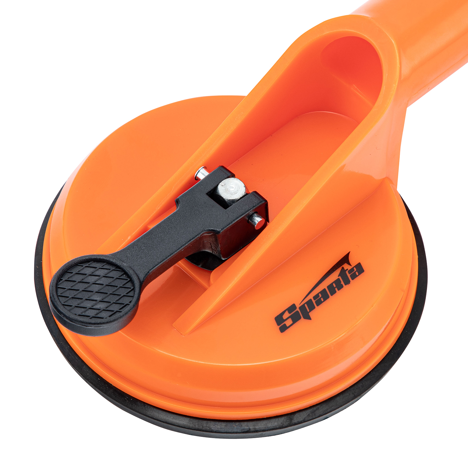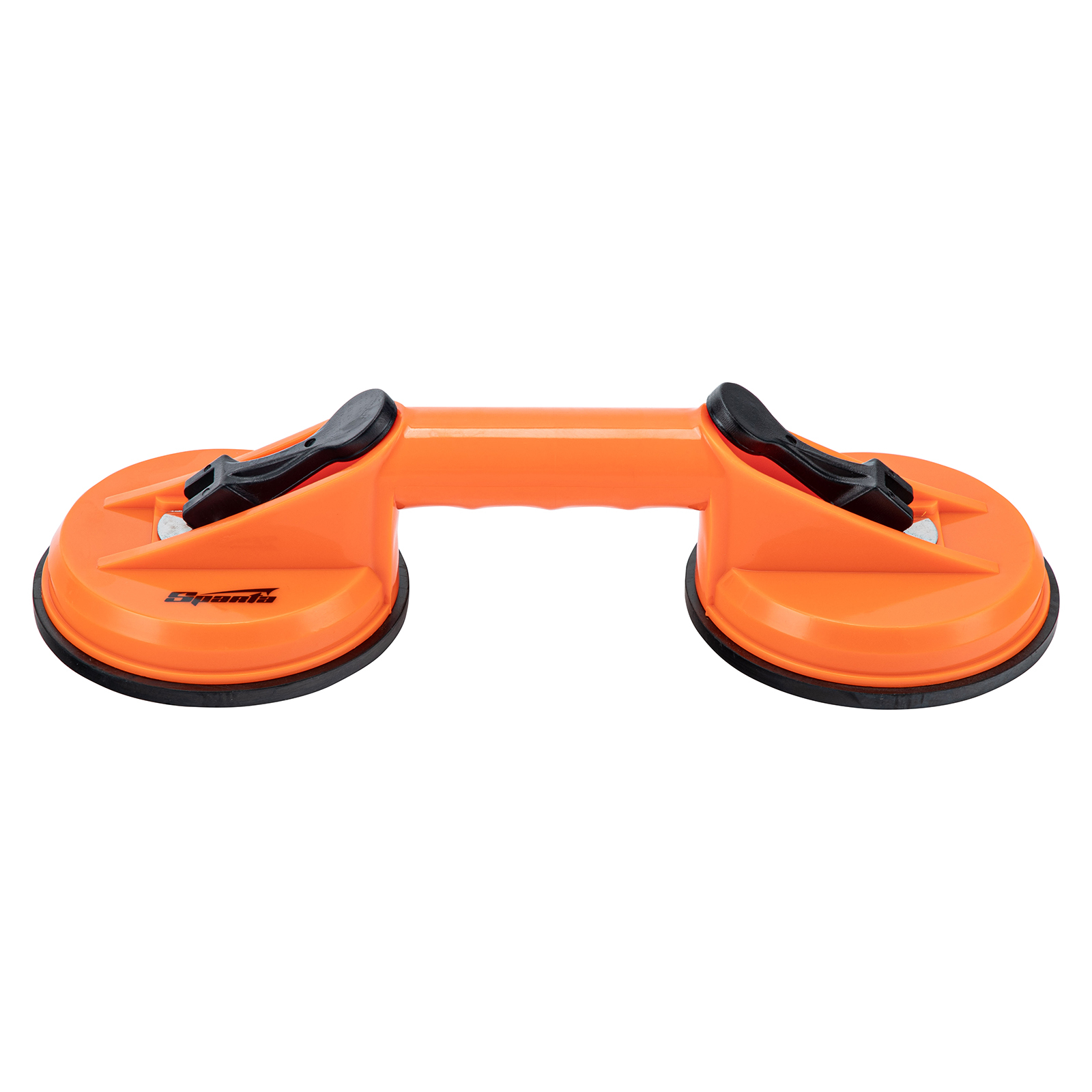 Двойной стеклодомкрат Sparta 875155 предназначен для удержания, переноски и установки зеркал, стекол, столешниц, кафельной плитки и других плоских гладких предметов массой до 80 кг. Две вакуумные присоски бережно, но надежно фиксируются на поверхности при помощи зажимов. Стеклодомкрат будет полезен во время проведения ремонта, а также пригодится в быту.