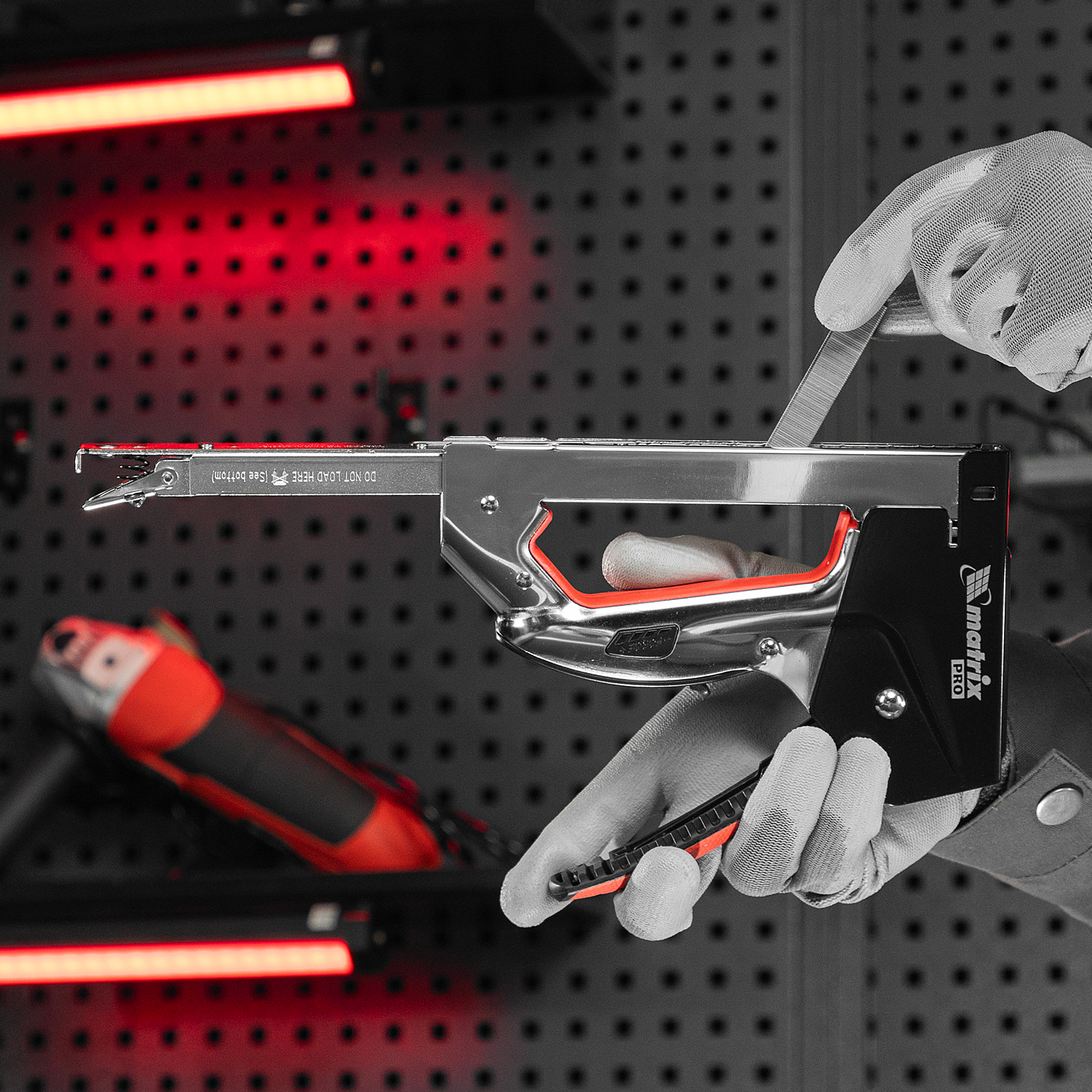 - Простая подготовка к работе — скобы быстро загружаются в скобоприемник, что экономит время мастера.