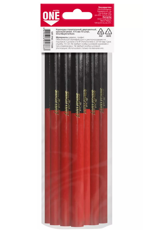 Двухцветный карандаш (с одного торца синий, с другого торца красный), позволяет размечать предметы и объекты, во избежание путаницы при обмерах, отрезах и так далее. Качественно склеенные половинки корпуса, умеренно сухое дерево для удобства затачивания карандаша.