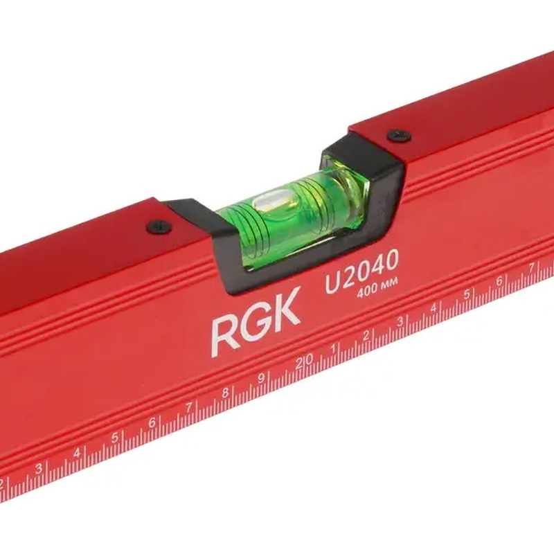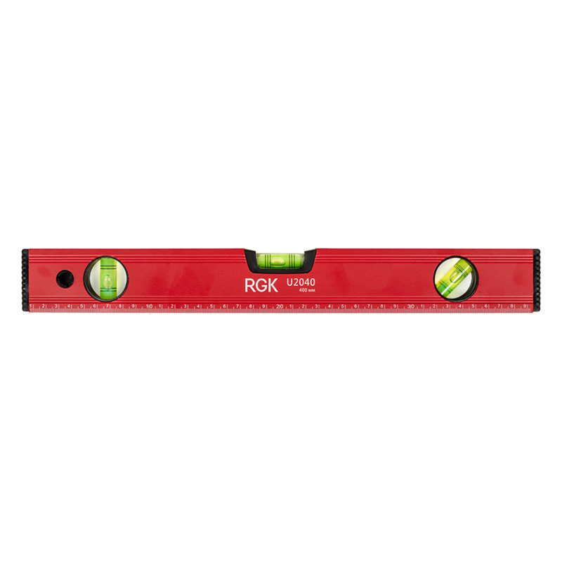 Уровень RGK U2040 выполнен в металлическом корпусе толщиной 0.8 мм, что препятствует его деформации и истиранию в процессе эксплуатации. Благодаря наличию в конструкции боковых вставок из ударопрочного пластика обеспечивается защита от повреждений при падениях на различные, в том числе, твердые поверхности. Для повышения удобства использования уровень RGK U2040 оснащен встроенными магнитами. Стекла ампул изготовлены из акрила и не подвержены протеканию или помутнению в процессе использования.