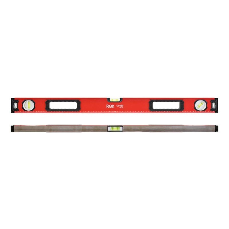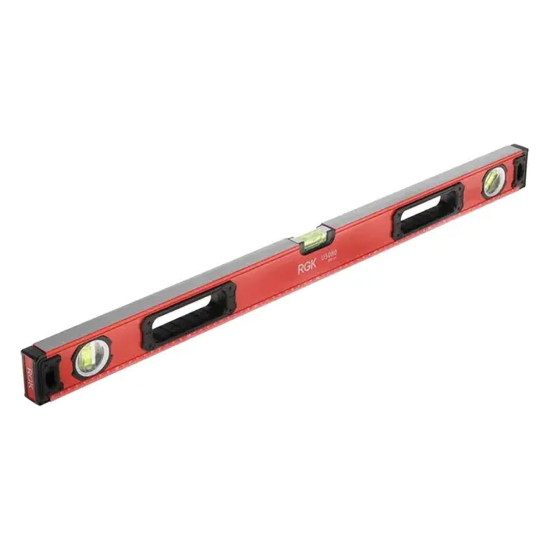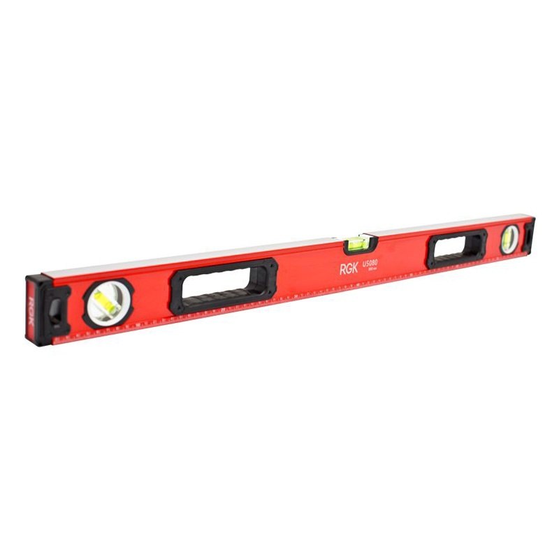 Уровень RGK U5080 оснащен прочным металлическим корпусом с удобными для удержания ручками. При помощи данного приспособления вы сможете проводить линейные измерения и выравнивание поверхностей. Устройство оснащено тремя ампулами, расположенными вертикально и горизонтально, с помощью которых вы легко выровняете различные поверхности, в том числе и под наклоном.