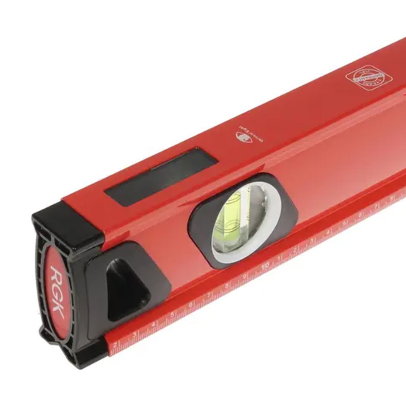 Устройство RGK U7100 позволяет не только проводить линейные измерения, но осуществлять выравнивание различных объектов по вертикали, горизонтали или под определенным наклоном. Измерения осуществляются в пределах от 0 до 360 градусов с точностью 0.5 мм/м. Также уровень дополнен удобными для удержания ручками и магнитным основанием.