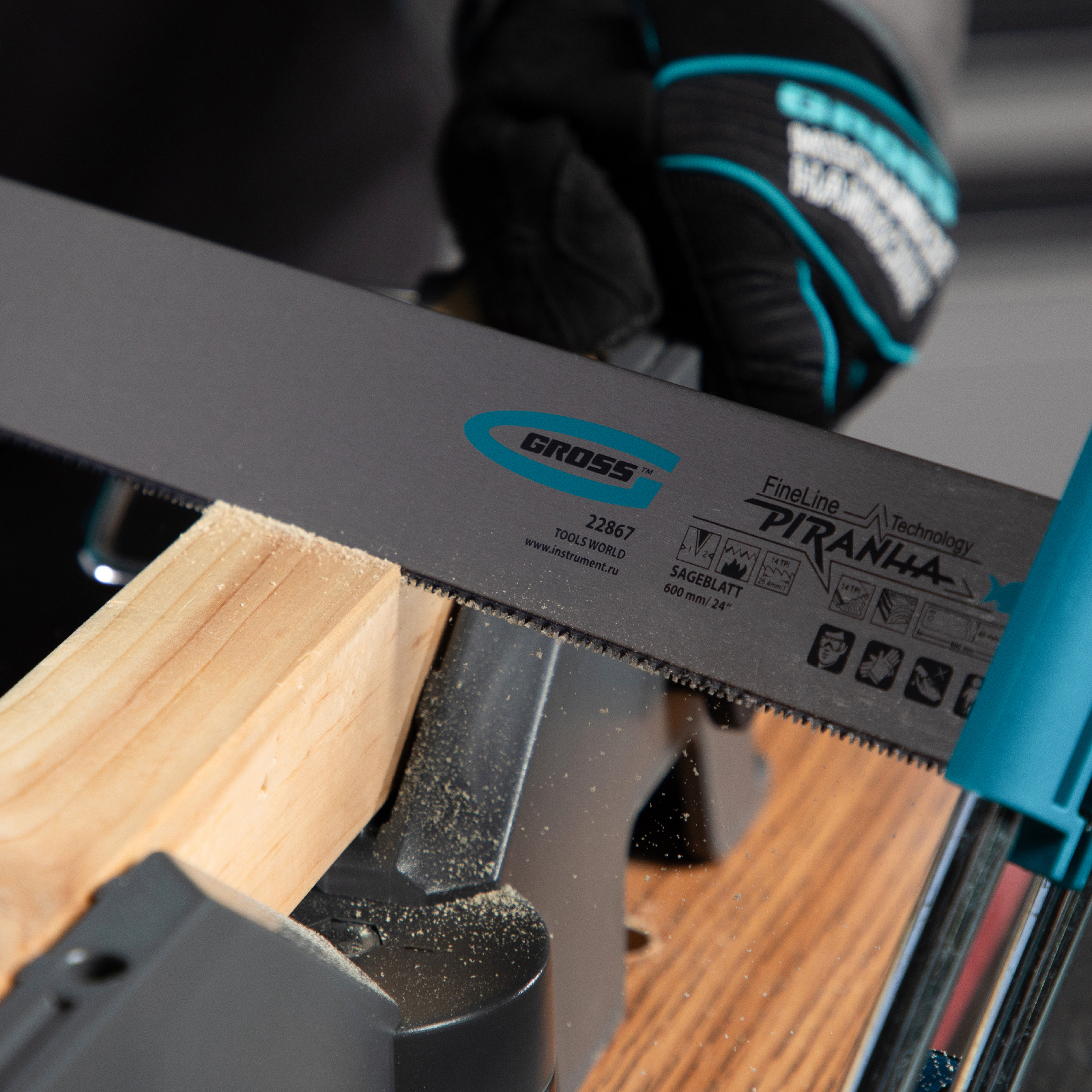 - Мелкие зубья пилы с шагом TPI 14 оставляют чистое место распила.