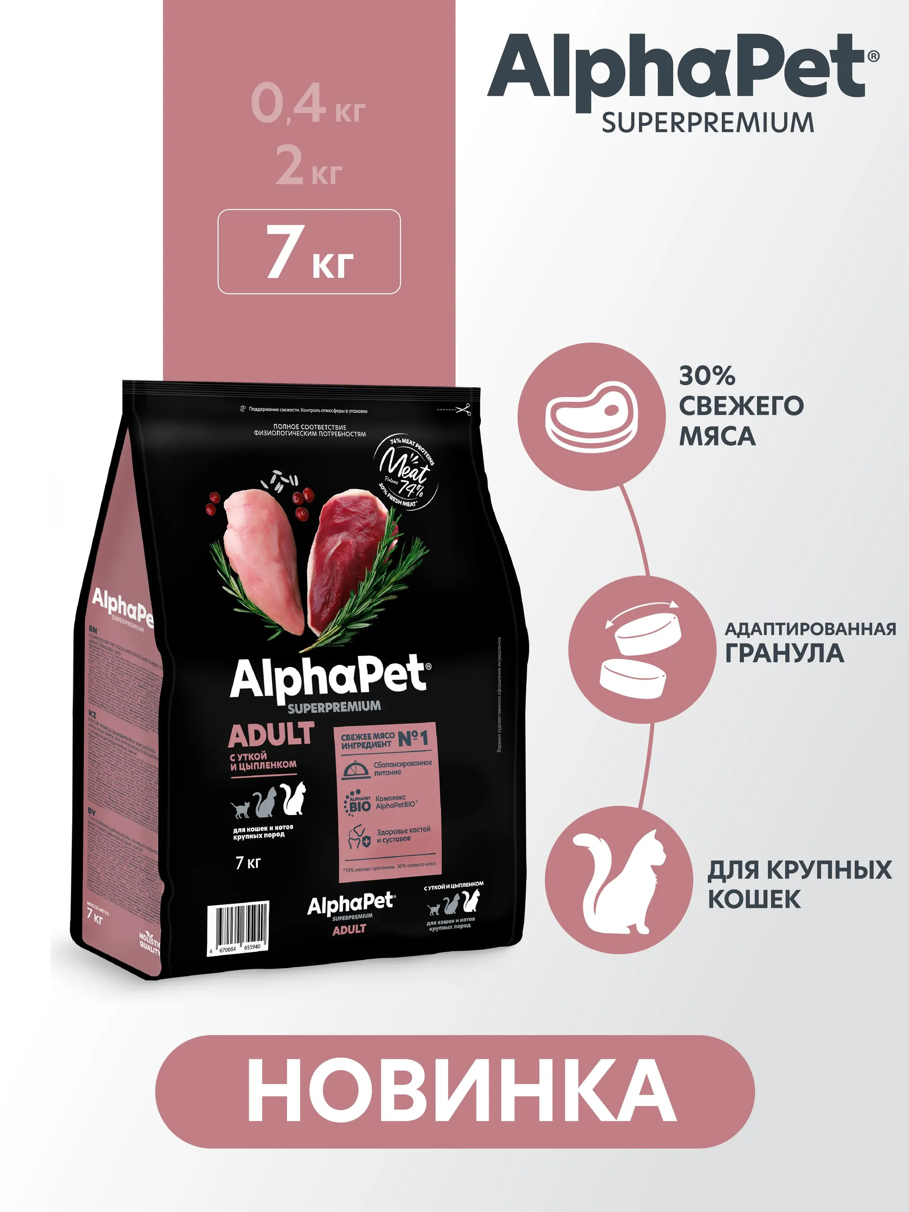 74% мясного белка 30% свежего мяса Крупные гранулы создают оптимальную нагрузку на челюстной аппарат кошки, стимулируя разрывание пищи, а не проглатывание целиком Уникальный комплекс натуральных добавок AlphaPetBIO® Хондропротекторы способствуют сохранению здоровья суставов у крупных кошек, поддерживают активность и качество жизни, предотвращая развитие опорно-двигательных заболеваний Не содержит ГМО, искусственных красителей и ароматизаторов Ингредиенты, пригодные в пищу человеку, уровня Human Grade Бережная технология, сохраняющая вкусовые и питательные свойства свежего мяса