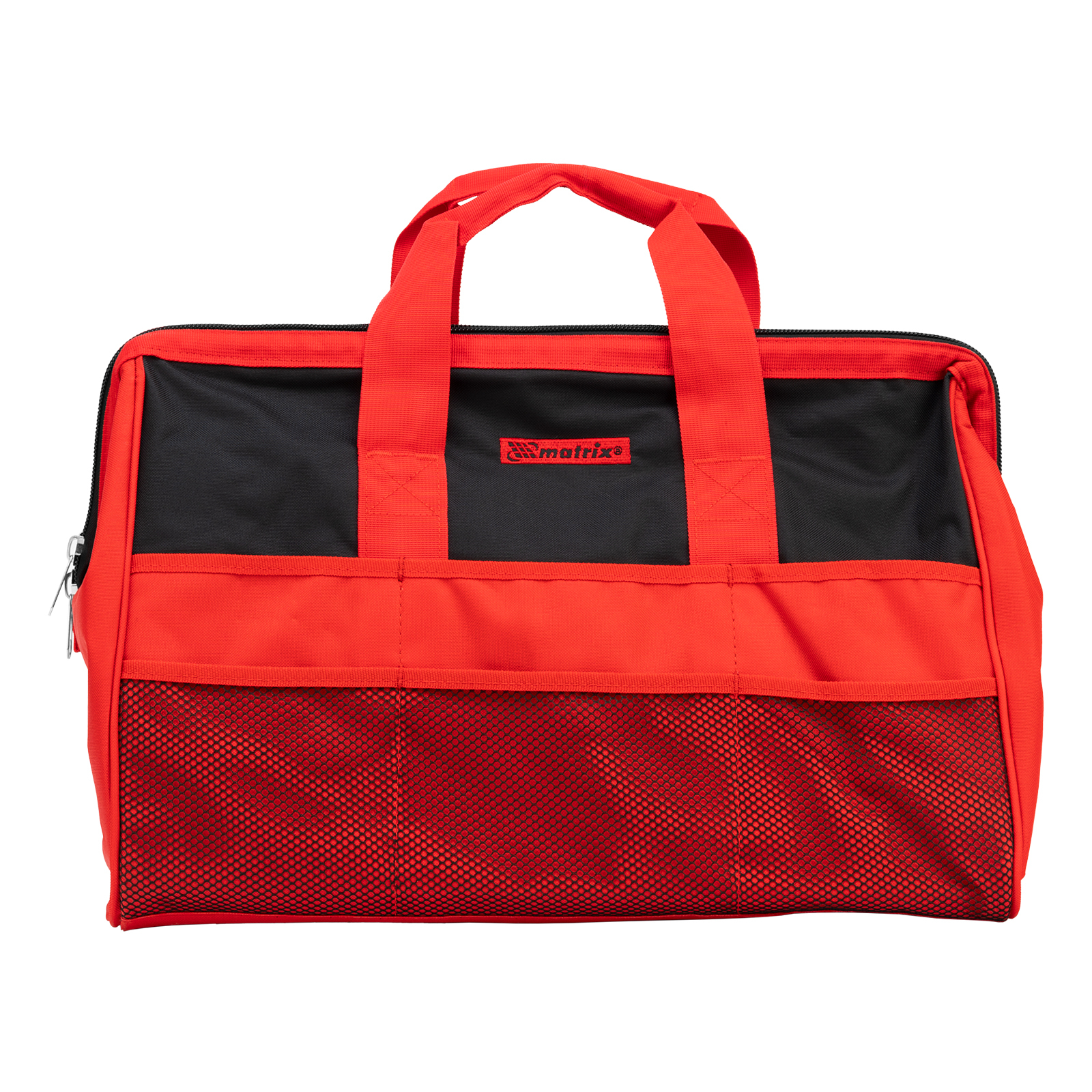 Сумка Matrix 90252 с 18 карманами, размером 510 х 210 х 360 мм, предназначена для транспортировки и хранения слесарных или столярных инструментов. Может использоваться для перевозки автопринадлежностей. В 18 карманах и вместительном основном отделении можно разместить инструменты разного размера. Сумка пригодится монтажнику, слесарю, строителю, будет полезна дома и в поездке.