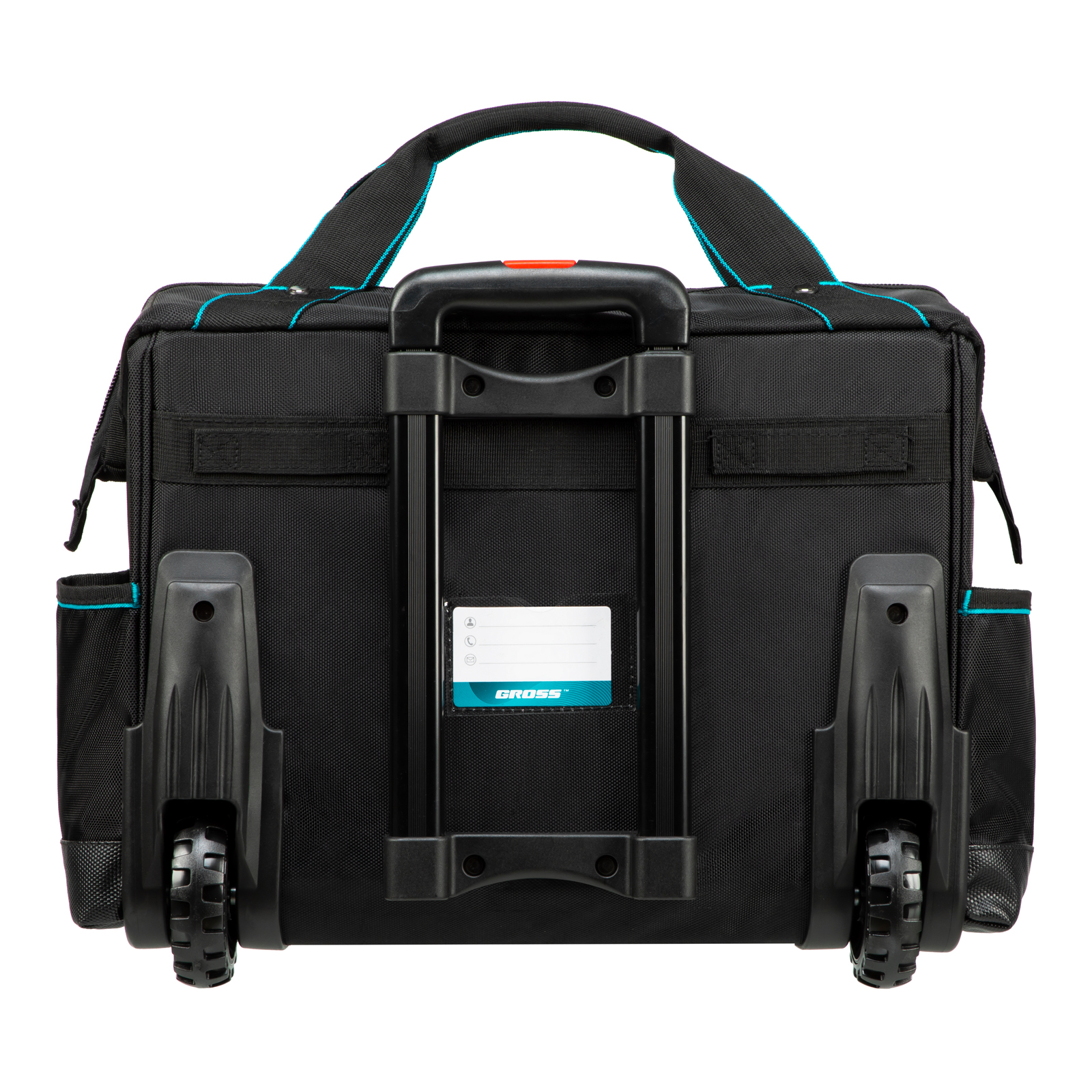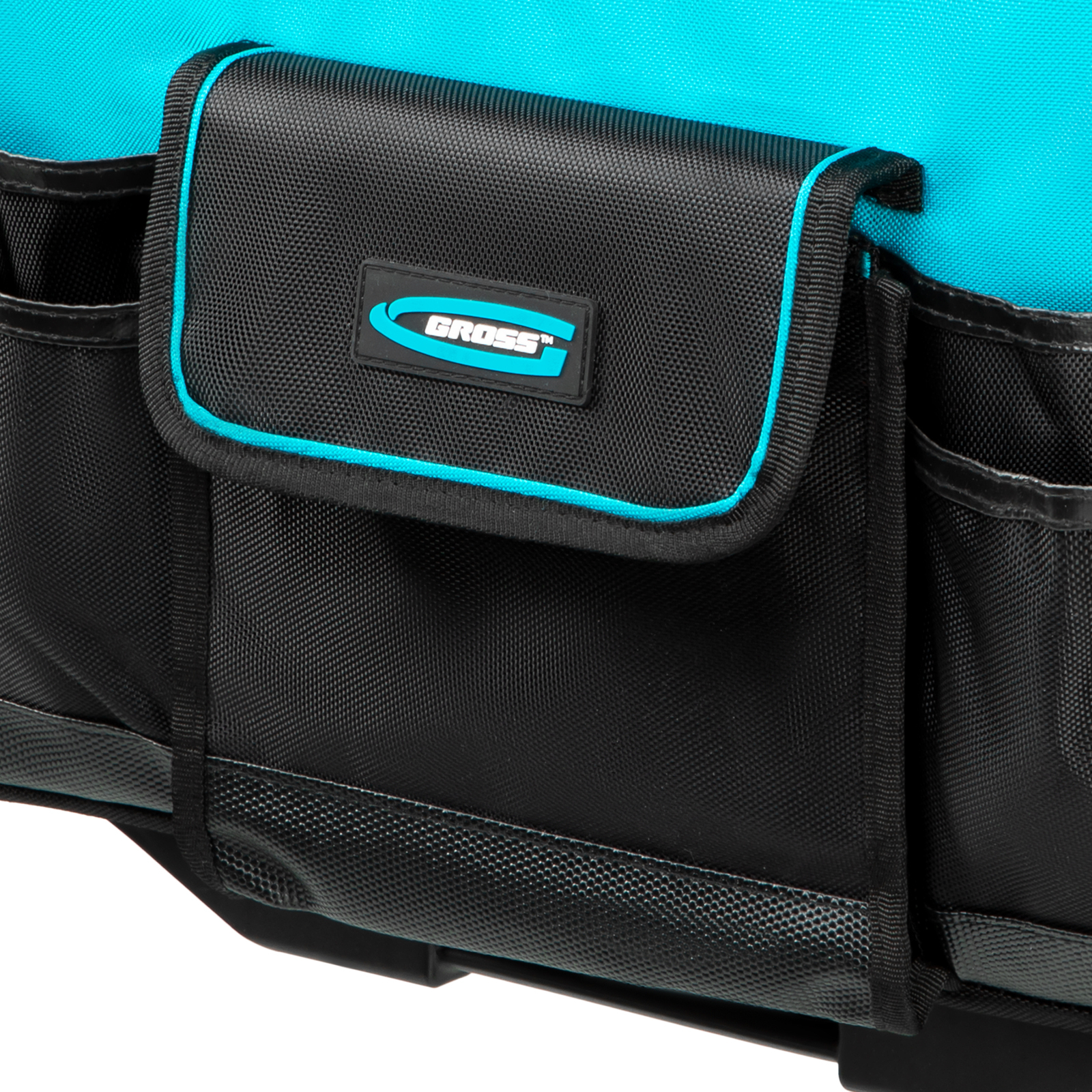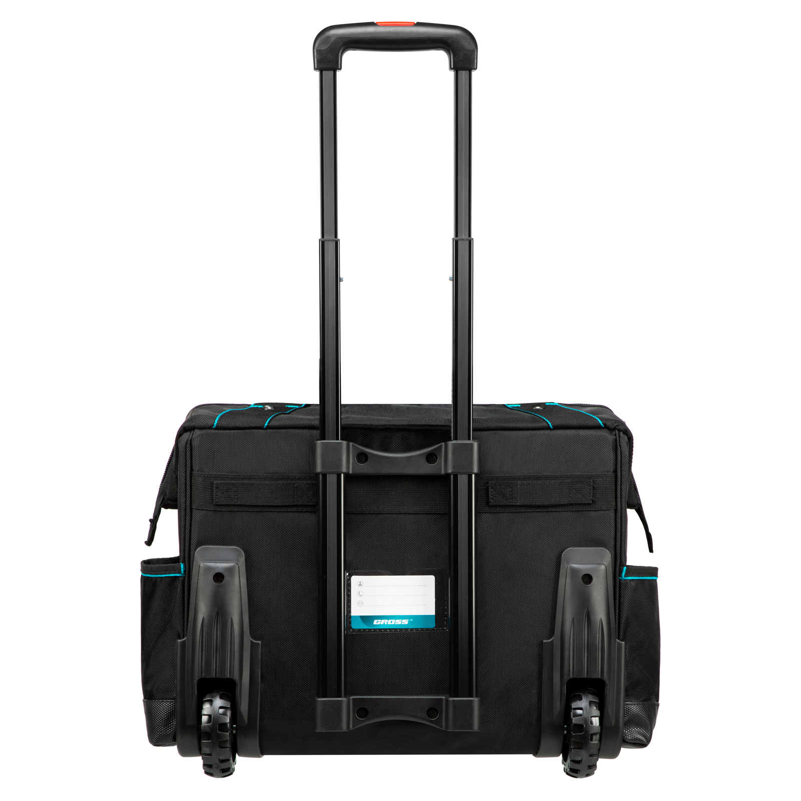 Сумка Gross 90277 размером 460 х 240 х 340 мм, с выдвижной рукояткой и колесами, имеет 18 карманов и вместительное основное отделение, в которые можно сложить необходимый ручной и электроинструмент. Сумка пригодится дома, в гараже и в поездке.
