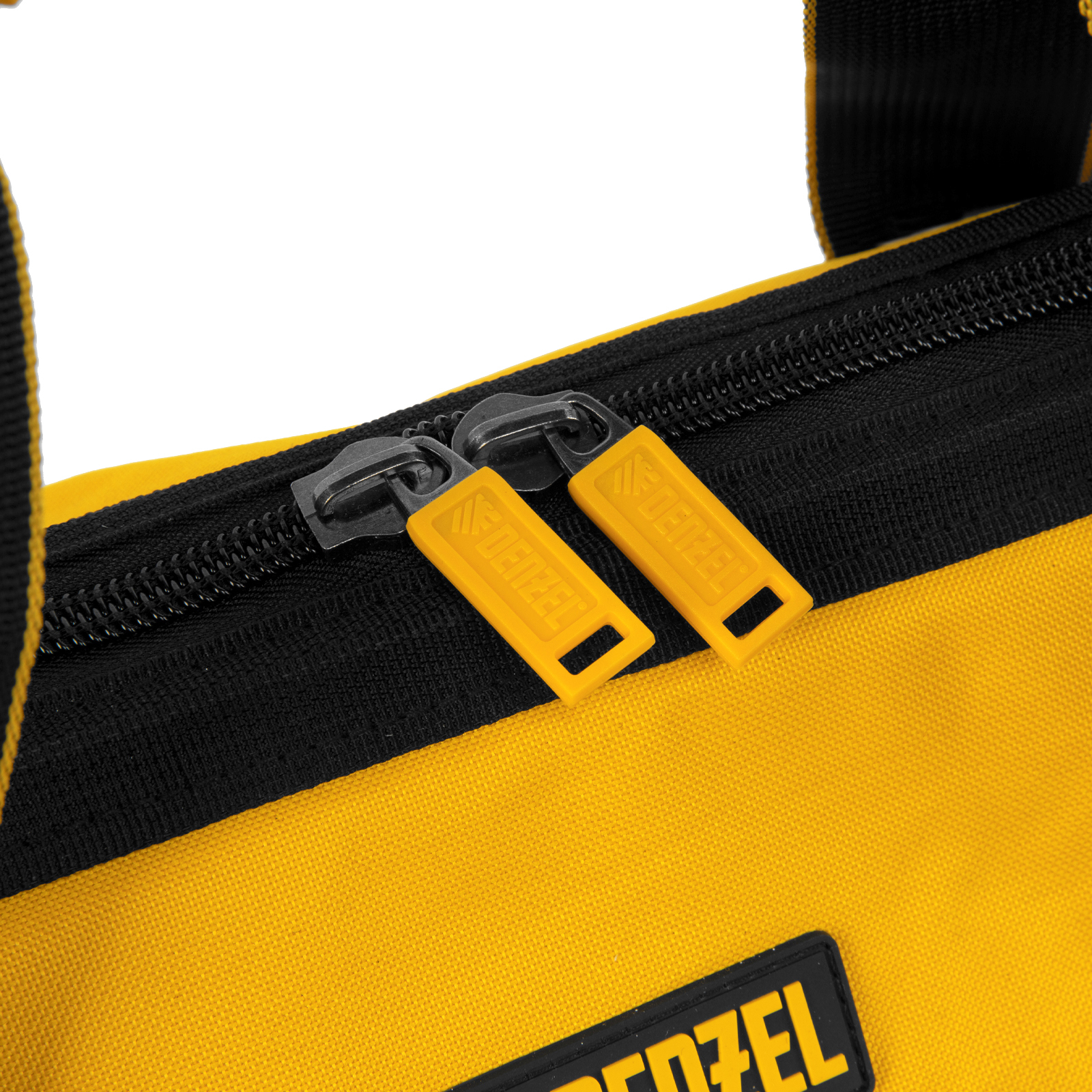 Сумка Denzel 90293 габаритами 500 х 245 х 300 мм с 20 карманами (в том числе съемным органайзером на 10 карманов) и наплечным ремнем, вмещает большое количество инструментов и используется для их хранения и транспортировки. Пригодится монтажнику, сантехнику, мастеру на выезде и автовладельцу.