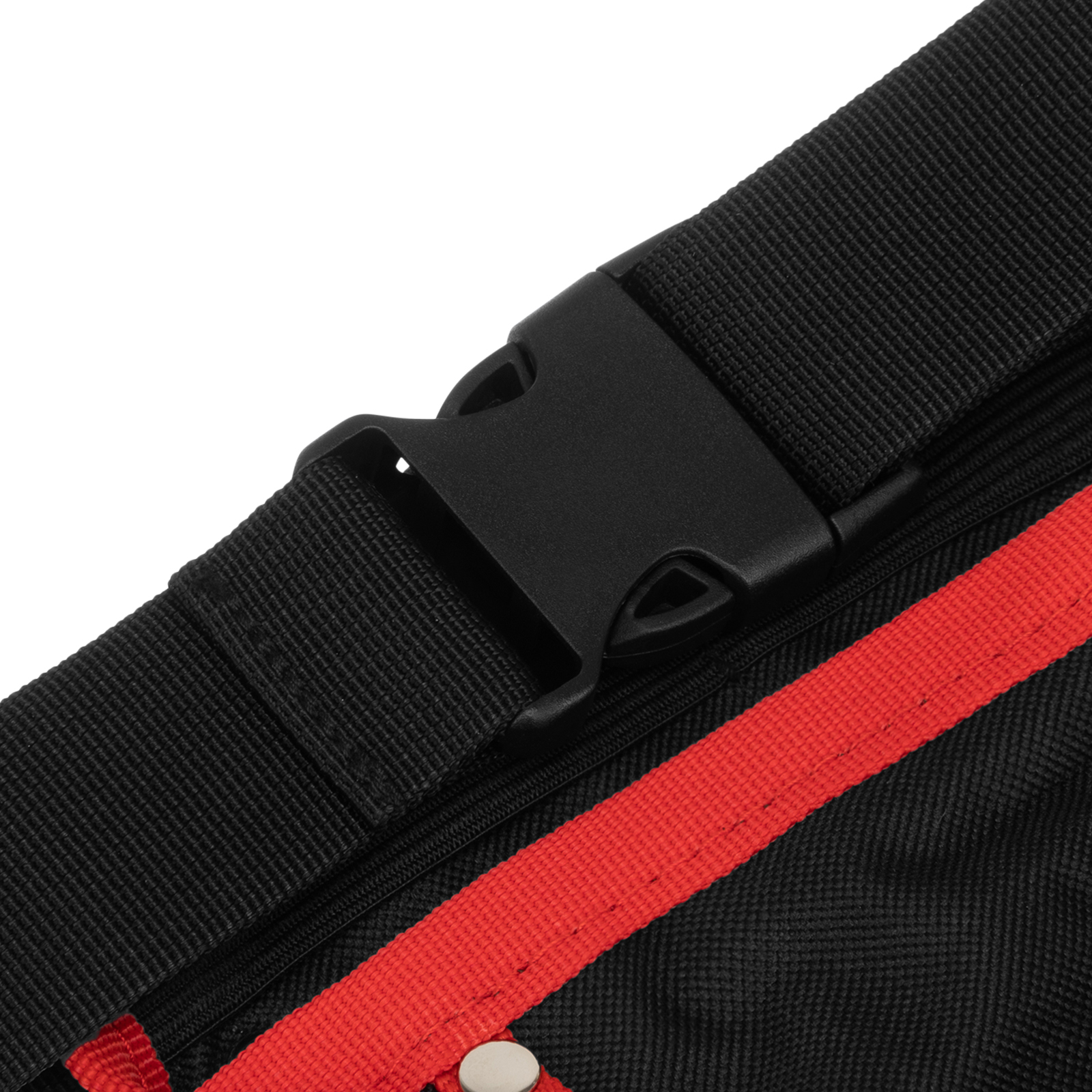 - Надежность — прочная пластиковая застежка надежно удерживает сумку-пояс на талии.