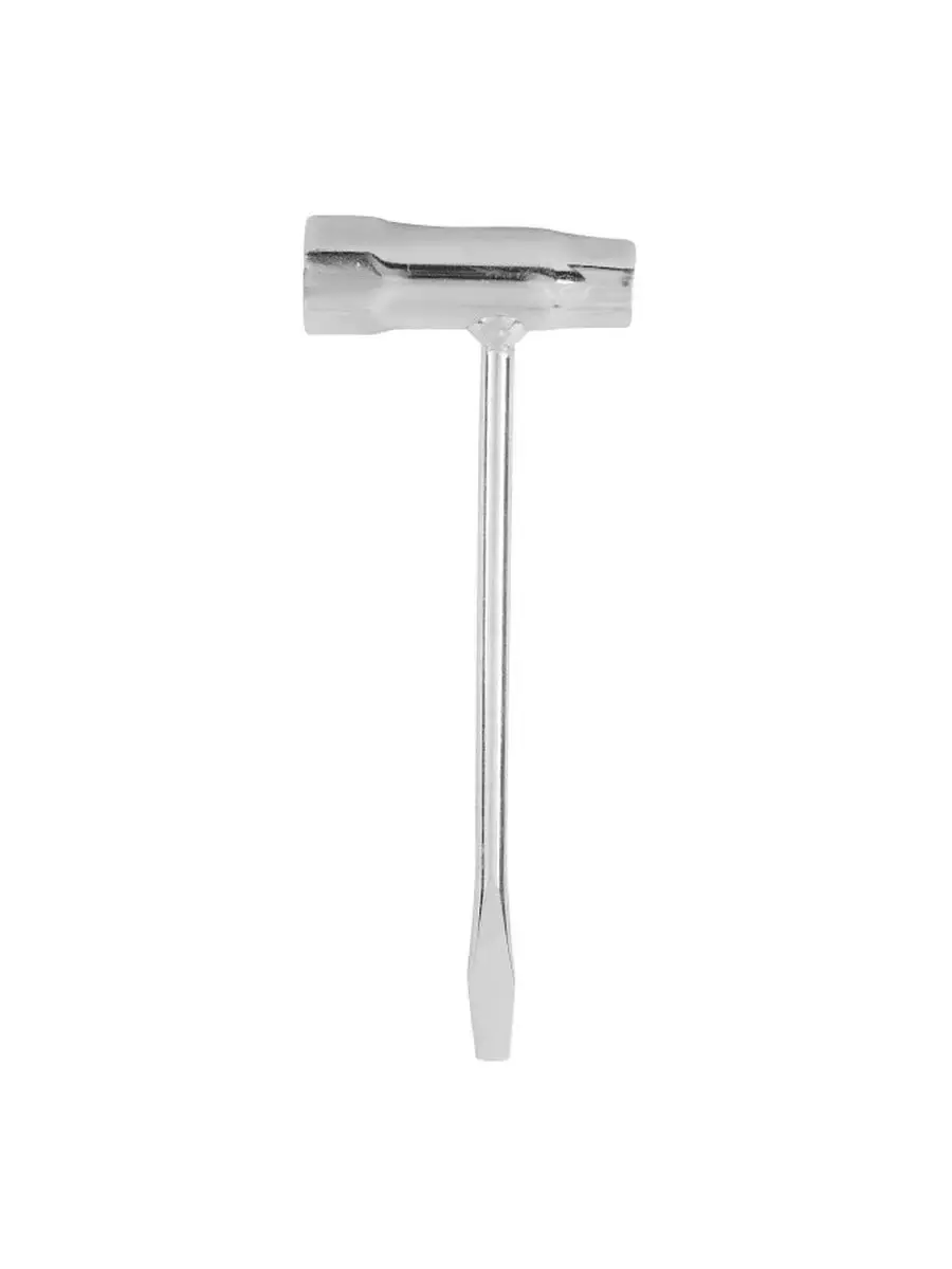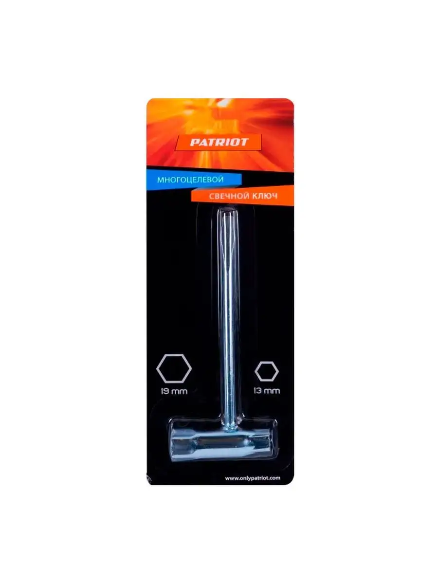 Универсальный свечной ключ PATRIOT для снятия и установки свечей зажигания в мототехнике или садовой технике без риска повреждения резьбы. Инструмент представляет собой длинную трубку с прикрепленной к ней головкой. Изготовлен из стали, обладает высокой прочностью и устойчивостью к износу. Универсальный ключ свечной с торцевыми головками диаметром 13 мм и 19 мм, а также с плоской отверткой. Он позволяет легко и безопасно снимать и устанавливать свечи зажигания, а плоская отвертка расширяет возможности использования ключа для других задач.
