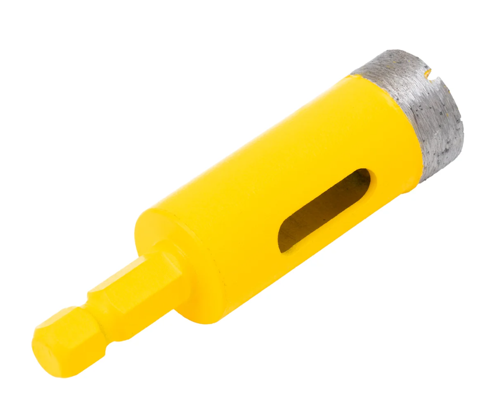 Алмазное сверло Denzel 72678 с 6-гранным хвостовиком, для мокрого резания, — режущий инструмент для получения точных отверстий диаметром 18 мм. Подходит для работ по стеклу, керамике, а также керамограниту и мрамору. Используется в качестве оснастки для дрелей и шуруповертов. Сверление с применением водяного охлаждения позволит избежать перегрева сверла и продлить срок его службы. Использование кондуктора 72830 препятствует смещению коронки и облегчает засверливание. Оснастка предназначена для профессионального использования.