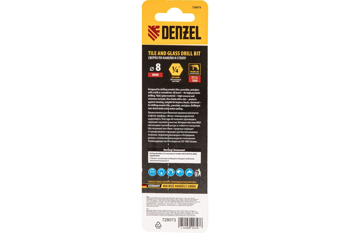 Технические характеристики сверла по керамической плитке Denzel 728073