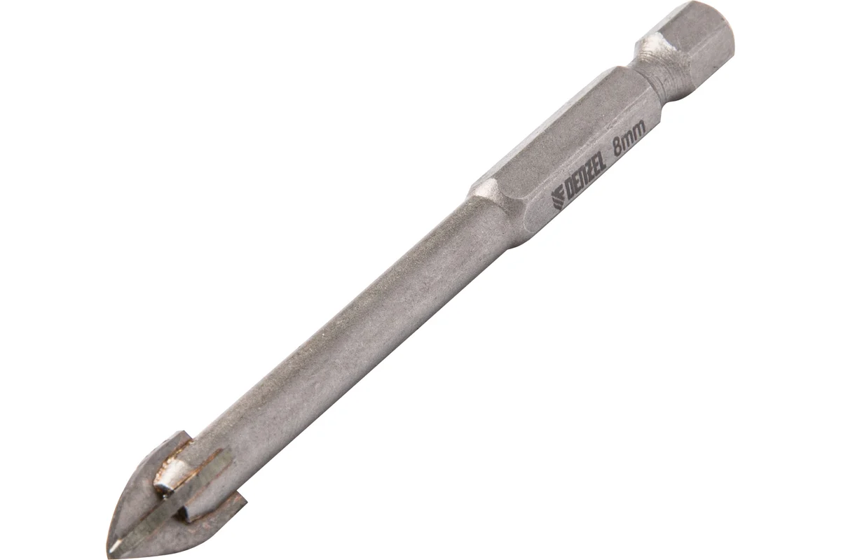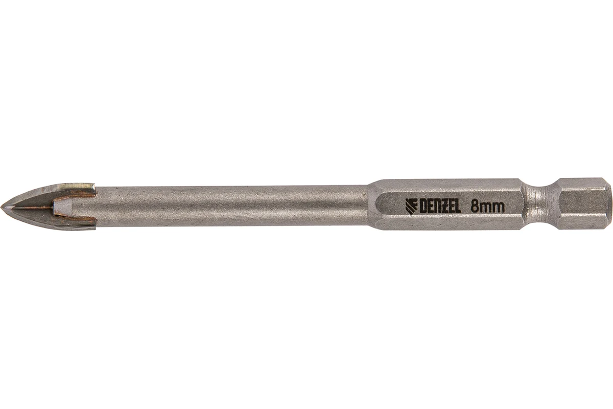 Сверло 8 мм, крестовая пластина, 6-гр. хвостовик Denzel 728073 предназначено для сверления керамической (кафельной) плитки, стекла, мрамора, фарфора с помощью дрели или шуруповерта.