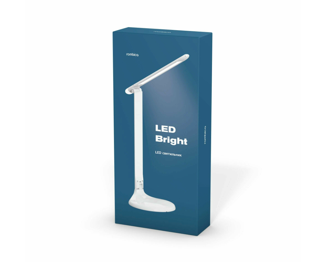 Rombica LED Bright DL-H025 — настольный светильник в белом корпусе из пластика, снабженный плавным регулятором яркости. Управление обеспечивает сенсорная панель, питание устройство получает от сети. В комплекте есть кабель для подключения длиной 1,5 м. Направление света можно менять. — компактный дизайн— сенсорное управление: контроль освещения легким нажатием — 4 уровня яркости — ночник — 3 режима работы: теплый, нейтральный и холодный белый свет