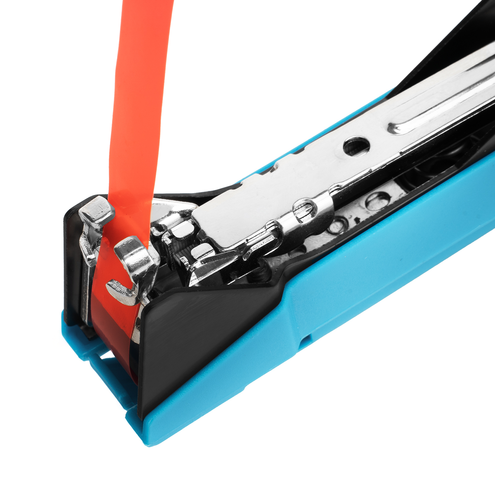- Эффективность — ударный механизм обеспечивает мгновенное скрепление ленты при помощи скобы.
