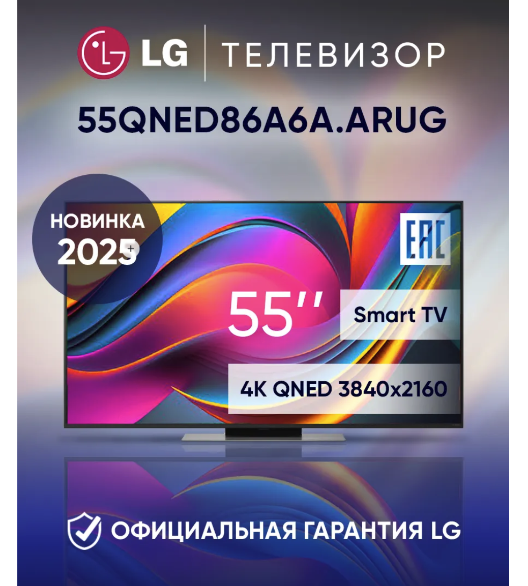 Телевизор смарт 55 дюймов LG 55QNED86A6A.ARUG черный