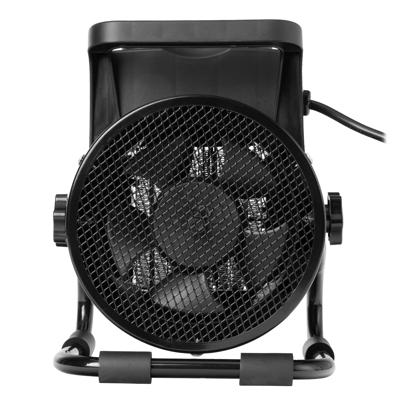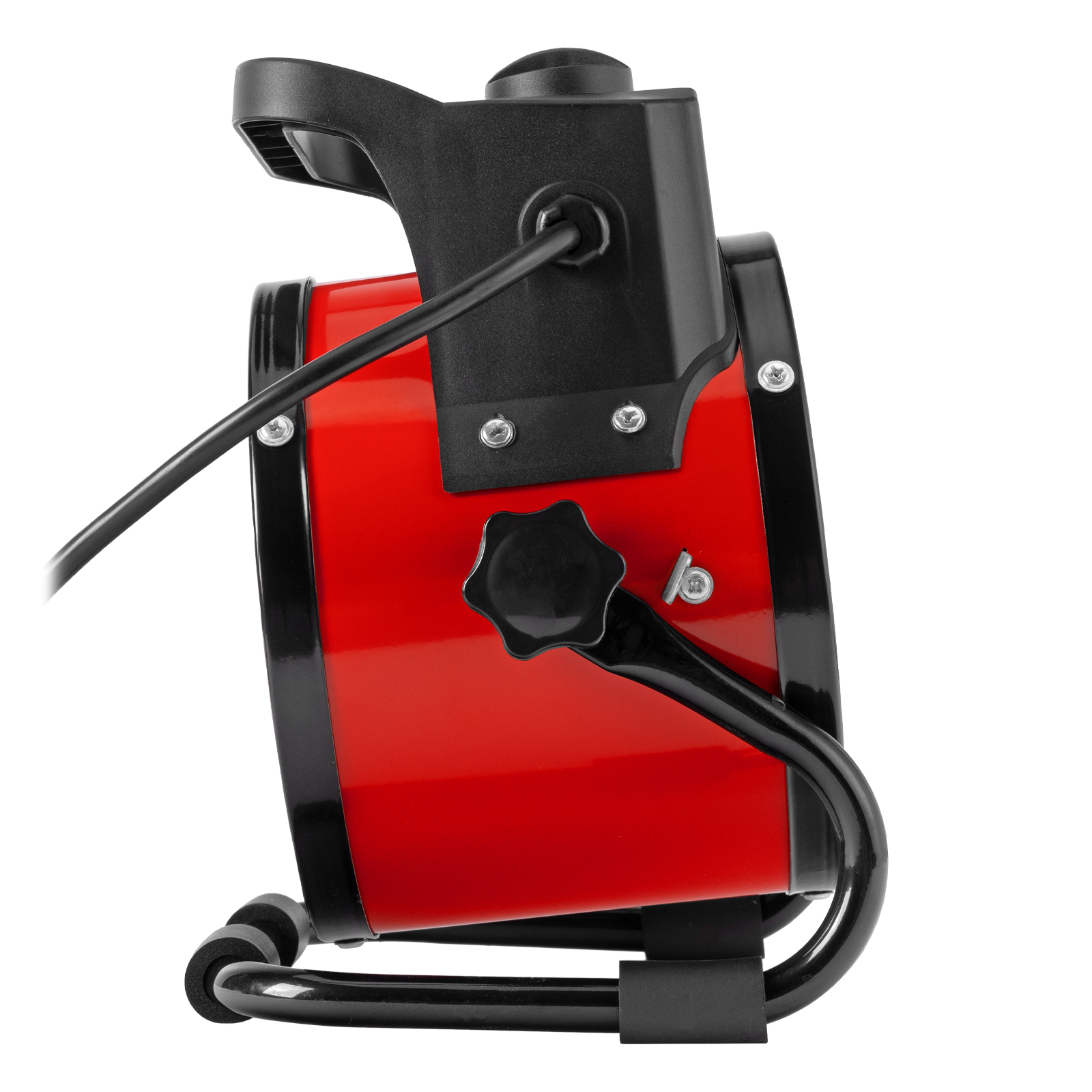 - Эргономичность — компактная тепловая пушка весит 1,4 кг, удобная рукоятка упрощает перемещение.
