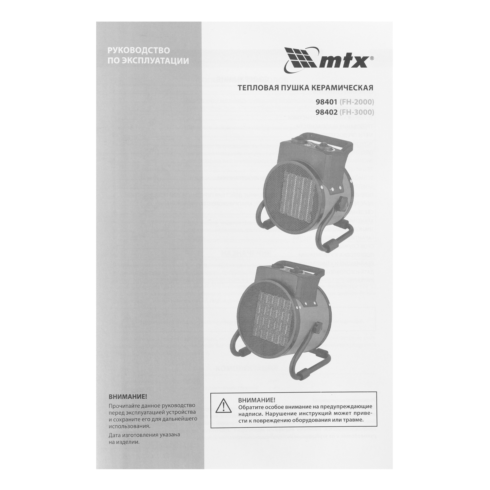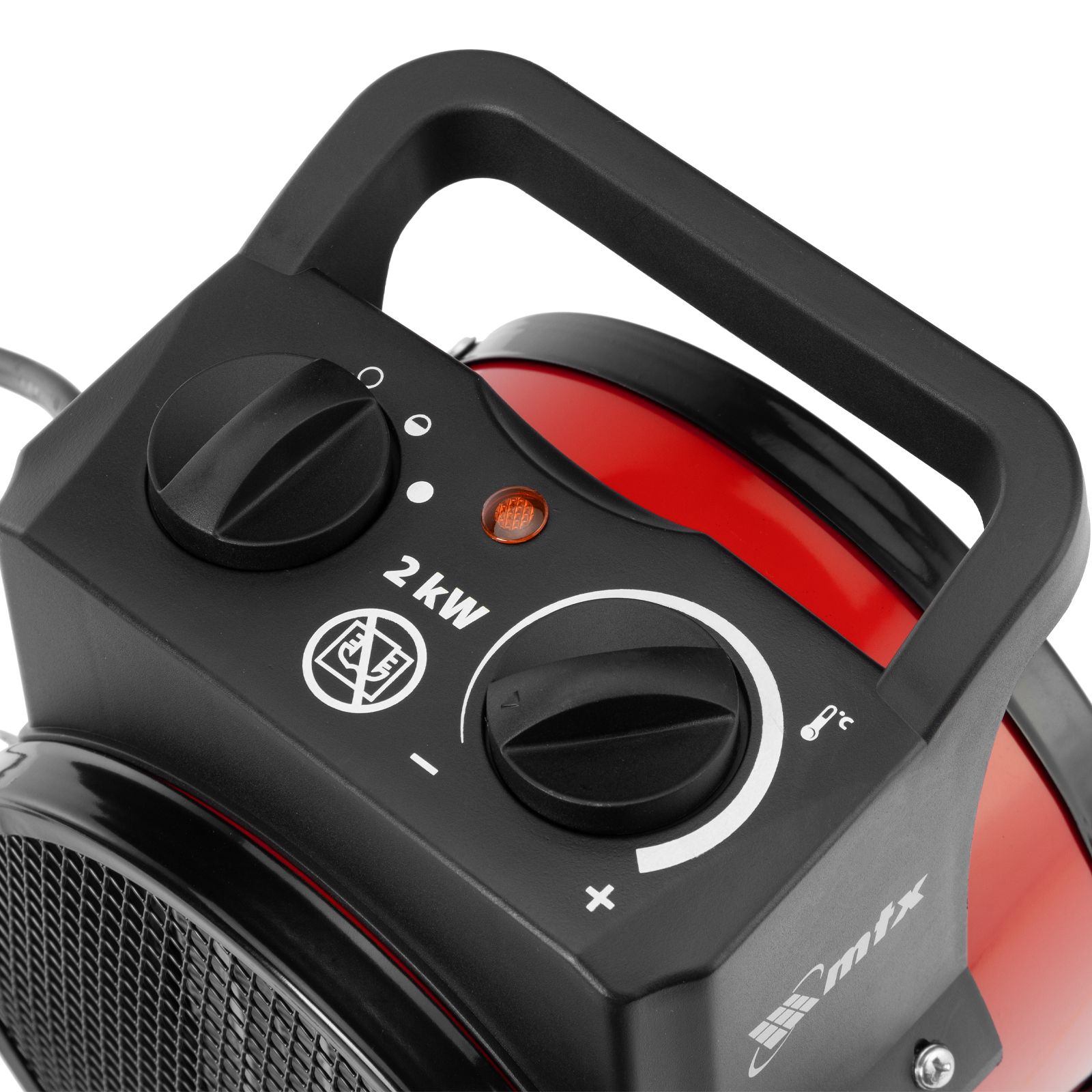 Керамическая тепловая пушка MTX FH-2000 98401 с термостатом, максимальной мощностью 2 кВт, работает в 2 режимах и предназначена для обогрева складов, мастерских и других нежилых помещений площадью до 20 м2. Также может использоваться для быстрой просушки различных поверхностей, например, стяжки пола, оштукатуренных и окрашенных стен.