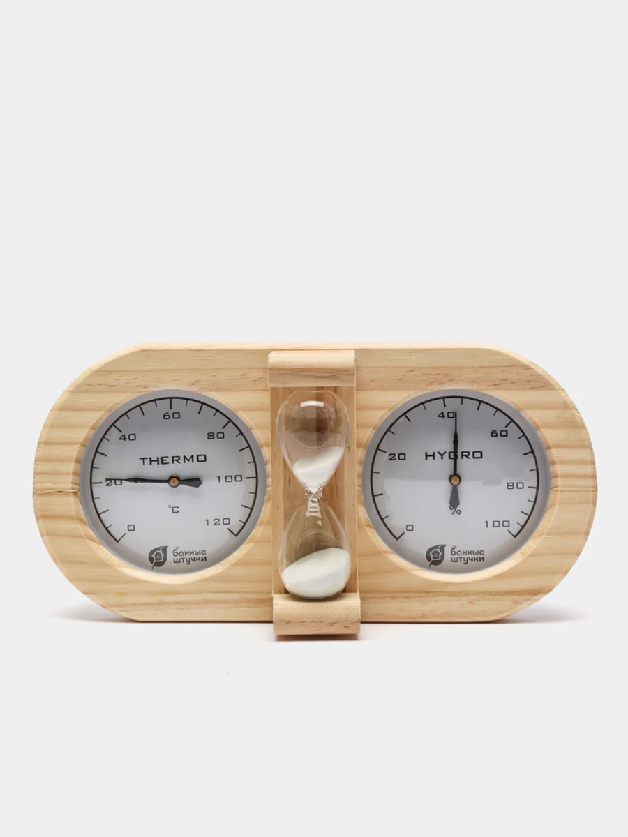 Термометр с гигрометром Банные штучки, Банная станция с песочными часами, 27х13.8х7.5 см 18028 помогает контролировать температуру и получать максимальное удовольствие от процедуры.