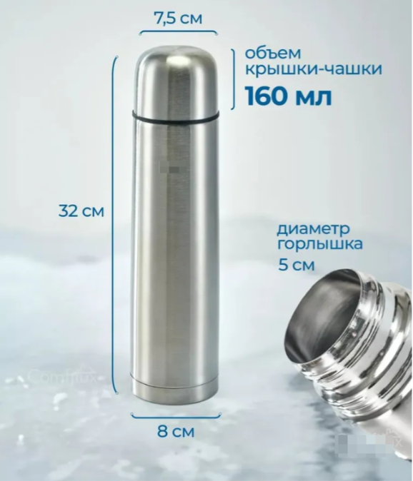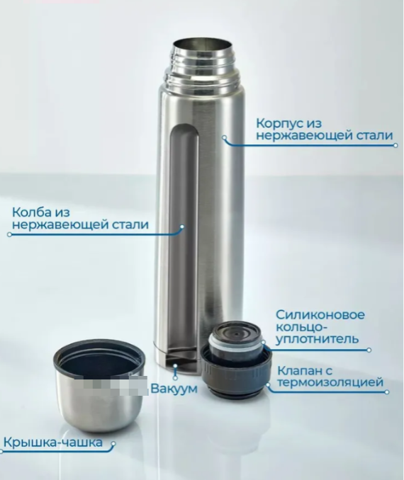 Термос оснащен крышкой-чашкой, что позволяет использовать его не только для хранения напитков, но и для употребления их прямо из термоса.