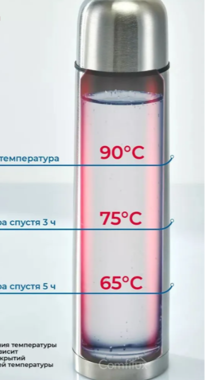 Особенностью термоса является вакуумный принцип работы, который позволяет сохранять температуру напитков до 10 часов. Это значит, что вы сможете наслаждаться горячими или холодными напитками в течение всего дня.