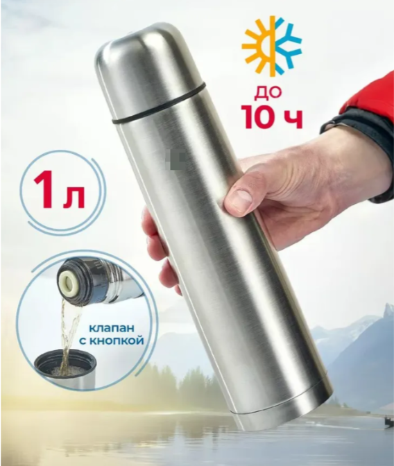 Объем термоса составляет 1 литр, что позволяет вместить достаточное количество напитка для всей компании.
