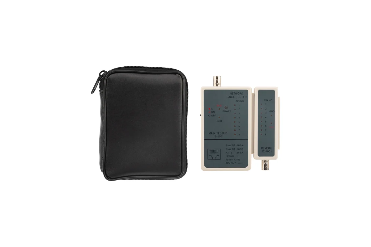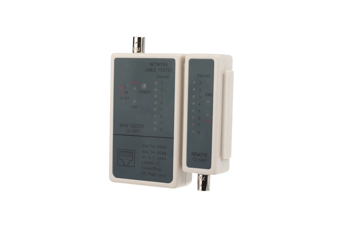 Тестер кабеля RJ-45 предназначен для тестирования коаксиальных кабелей и кабелей на основе витых пар. Тестер состоит из двух функциональных блоков — передатчика и приемника, которые подключаются к концам кабельной линии через разъемы RJ-45 или BNC.