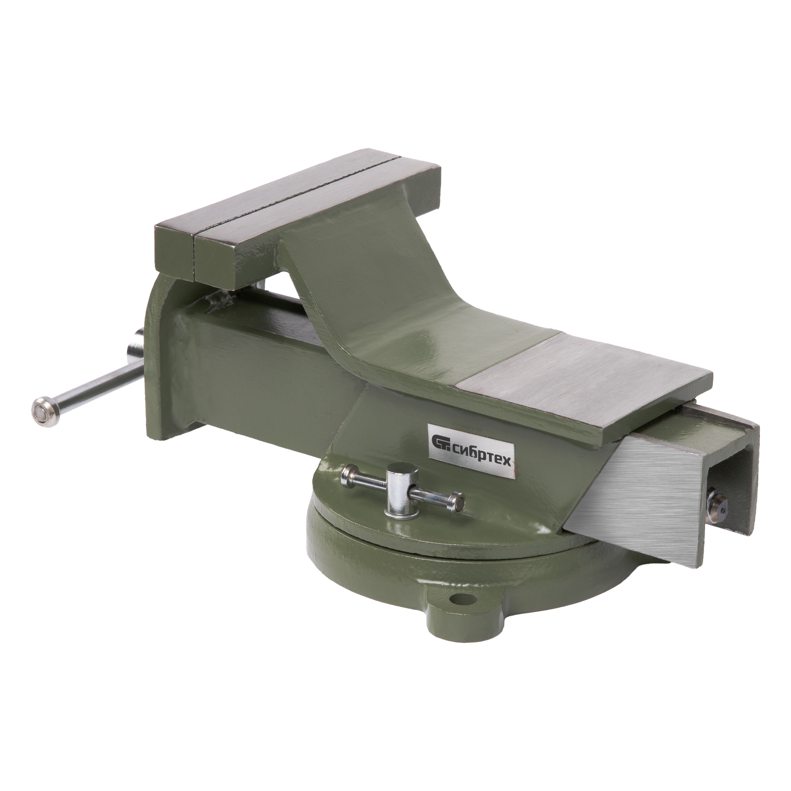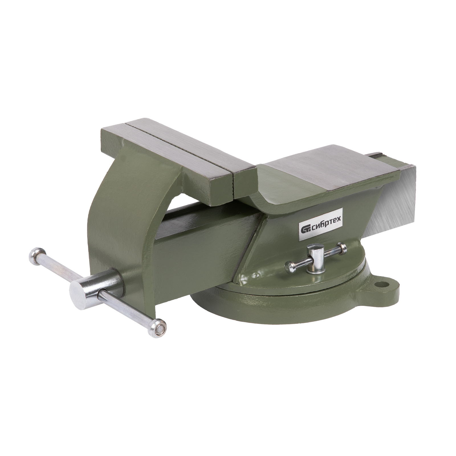 Стальные слесарные тиски Сибртех 18619 с поворотным механизмом и прижимными винтами предназначены для жесткой фиксации деталей. Ширина губок составляет 125 мм, рабочий ход — 125 мм. Используются для сверления, шлифования, пиления, выполнения сборочных и других работ. Тиски вращаются на 360°, что позволяет придать заготовке оптимальное положение. Приспособление будет полезно в мастерской, на даче и в гараже.