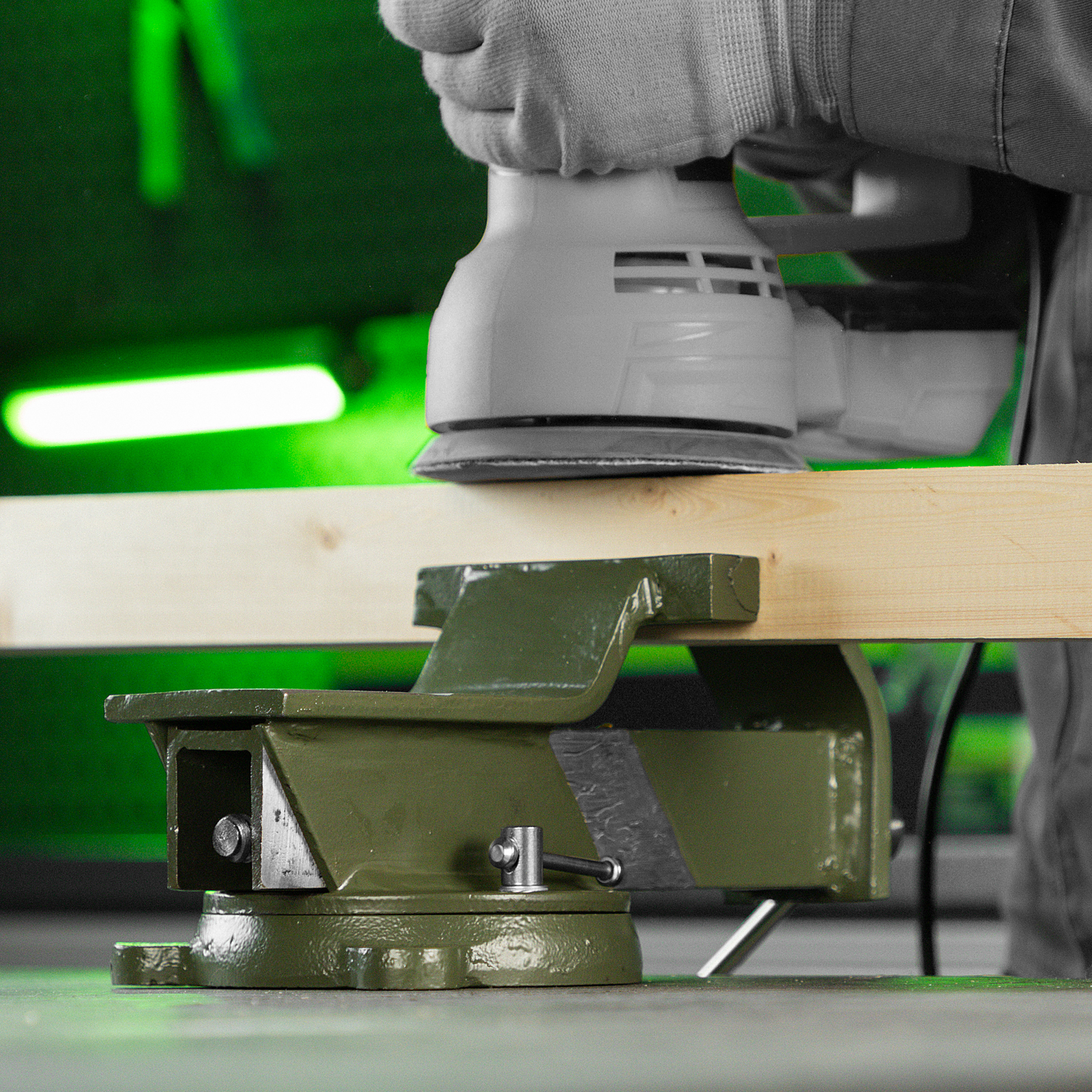 - Простая установка — в основании имеются отверстия для крепления к верстаку.