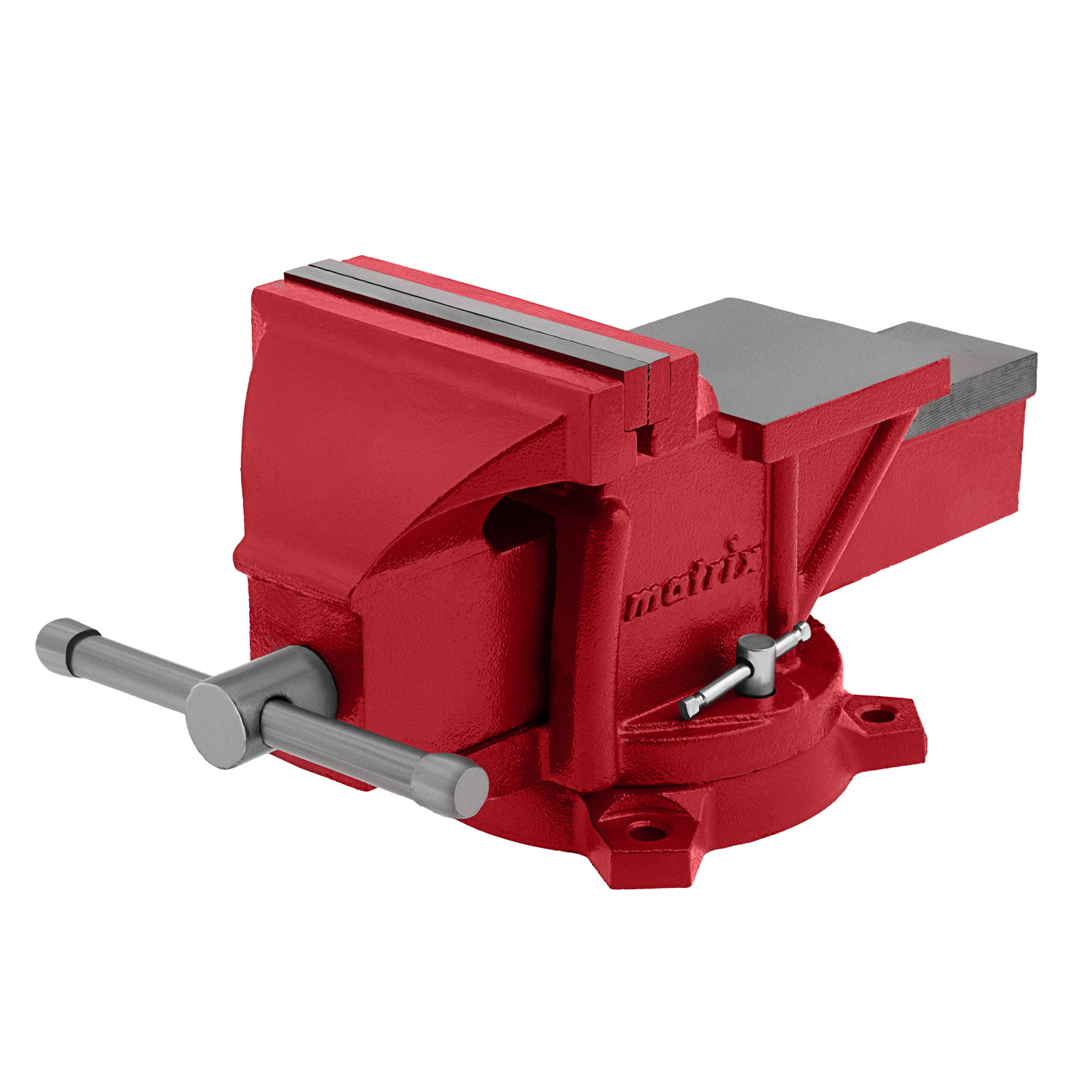 Поворотные слесарные тиски Matrix 18602 с наковальней и губками шириной 150 мм имеют рабочий ход 160 мм и предназначены для захвата и фиксации различных деталей. Поворотный механизм с прижимными винтами позволяет вращать тиски на 360° и фиксировать их в выбранном положении для удобной обработки заготовок с разных сторон. Инструмент используется для шлифовки, сверления и проведения других работ. Будет полезен в мастерской и гараже.
