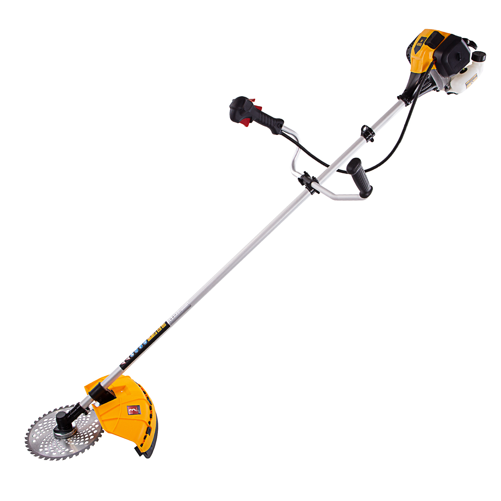 Бензиновый триммер Denzel DGT-250 96223 с двигателем объемом 25 см3 и мощностью 1,3 л. с., с неразъемной штангой, состоит из 2 частей. Комплектуется усиленной катушкой, трехлопастным ножом и пильным диском. Предназначен для подравнивания газона, скашивания травы различных типов, в том числе с жесткими стеблями (полыни, крапивы, лебеды), а также срезания борщевика, кустарника и молодых побегов деревьев с диаметром стволов до 10 мм. Удобен для работы в местах, недоступных для колесной косилки.